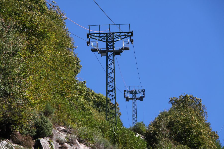 Auf der Südseite der Magadinoebene trifft man in Camorino auf die einspurige Luftseilbahn zur Alpe di Croveggia. Kurisoserweise wird bei dieser Bahn - ähnlich wie beim Luftseilbahnsystem von André Rébufell - das zurückgeführte Zugseil als Tragseil für die Kabine verwendet. Entsprechend ist die Anlage stützenlos ausgeführt, Oktober 2010