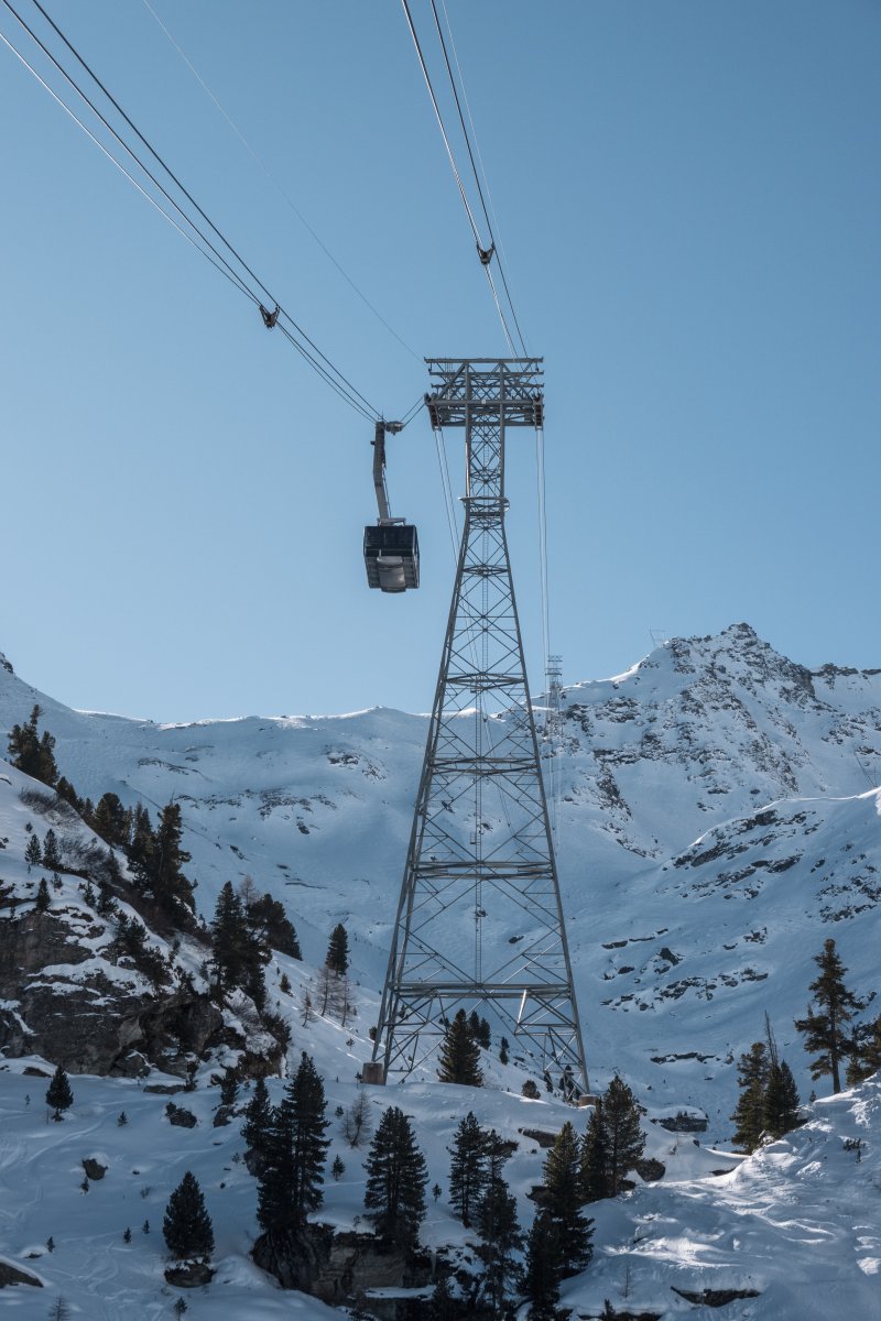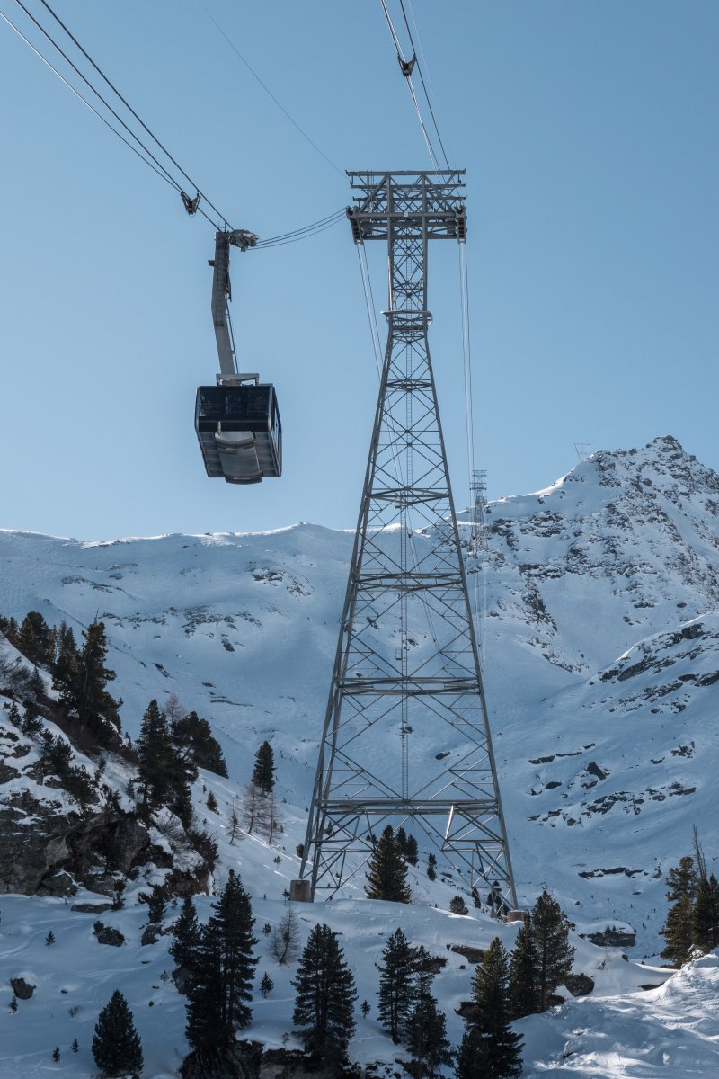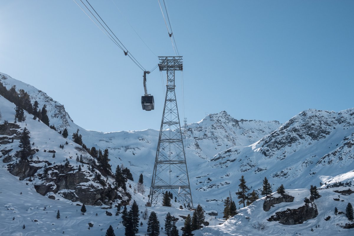 Die Seilbahn Tortin-Col des Gentianes überwindet einen Höhenunterschied von 848 Metern.