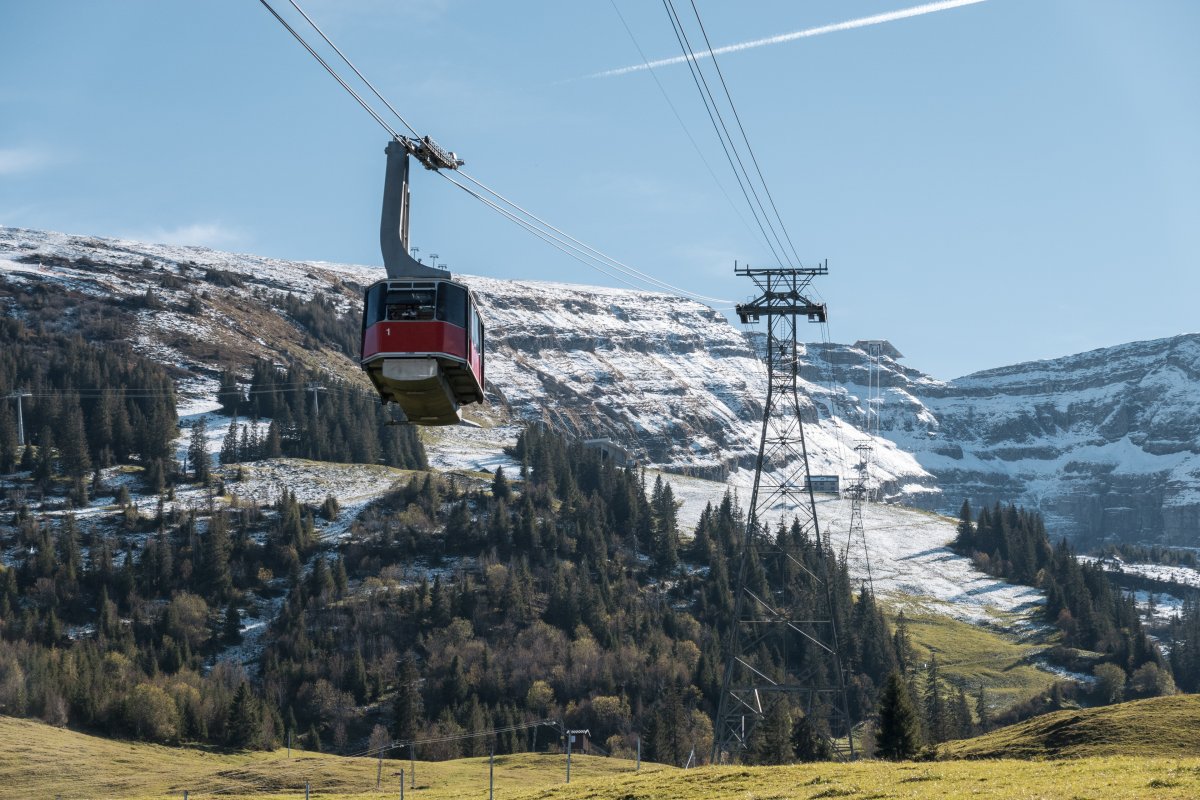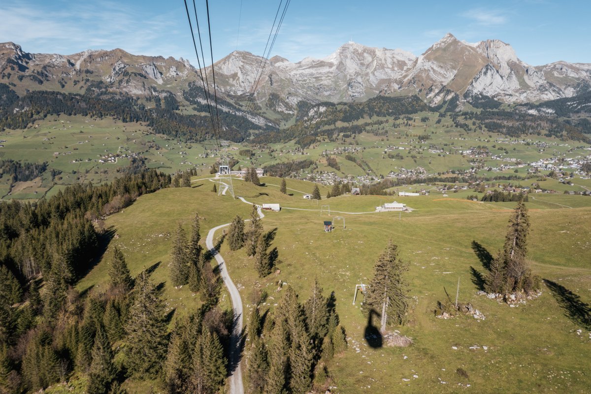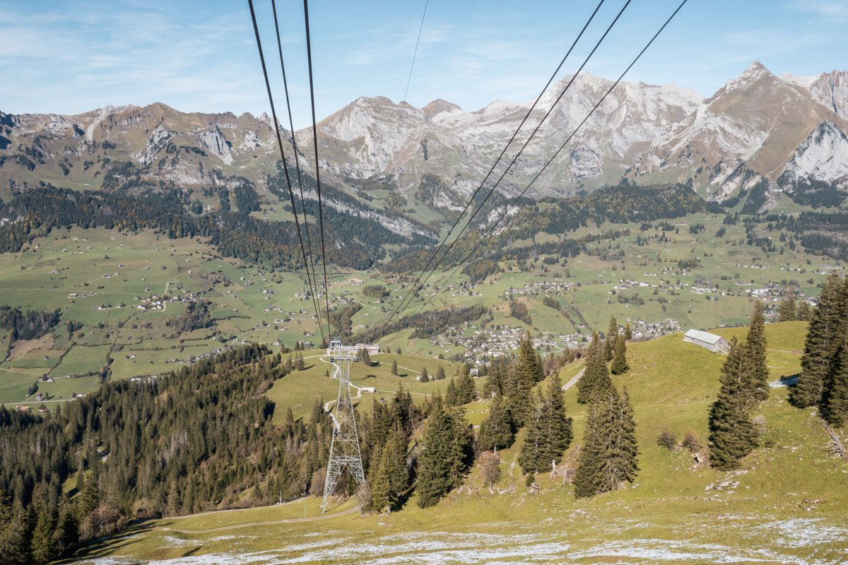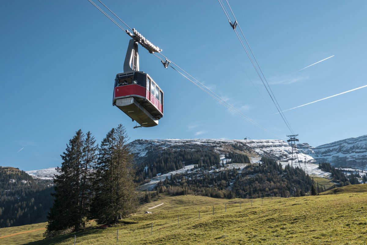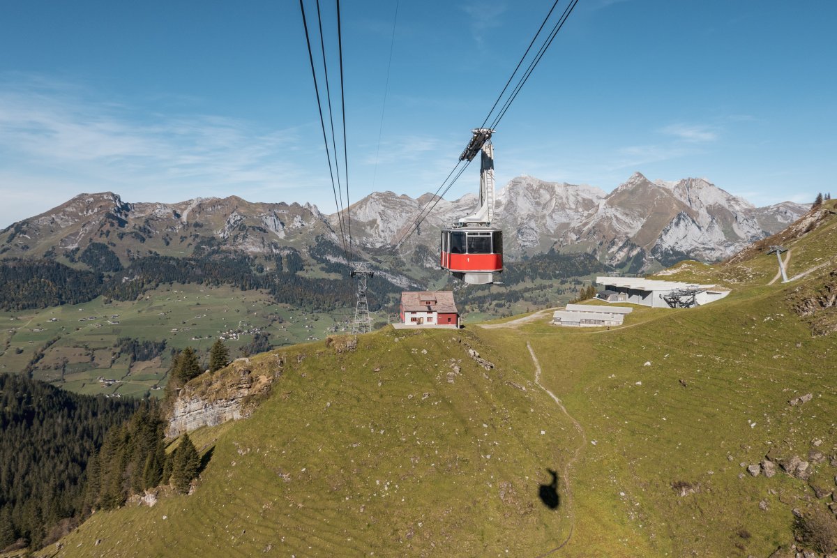 Die Seilbahn Iltios-Chäserrugg überwindet einen Höhenunterschied von 916 Metern.