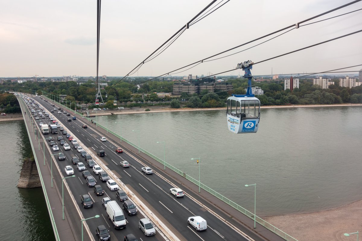 Die Seilbahn Riehl-Rheinpark Deutz überwindet einen Höhenunterschied von 4 Metern.