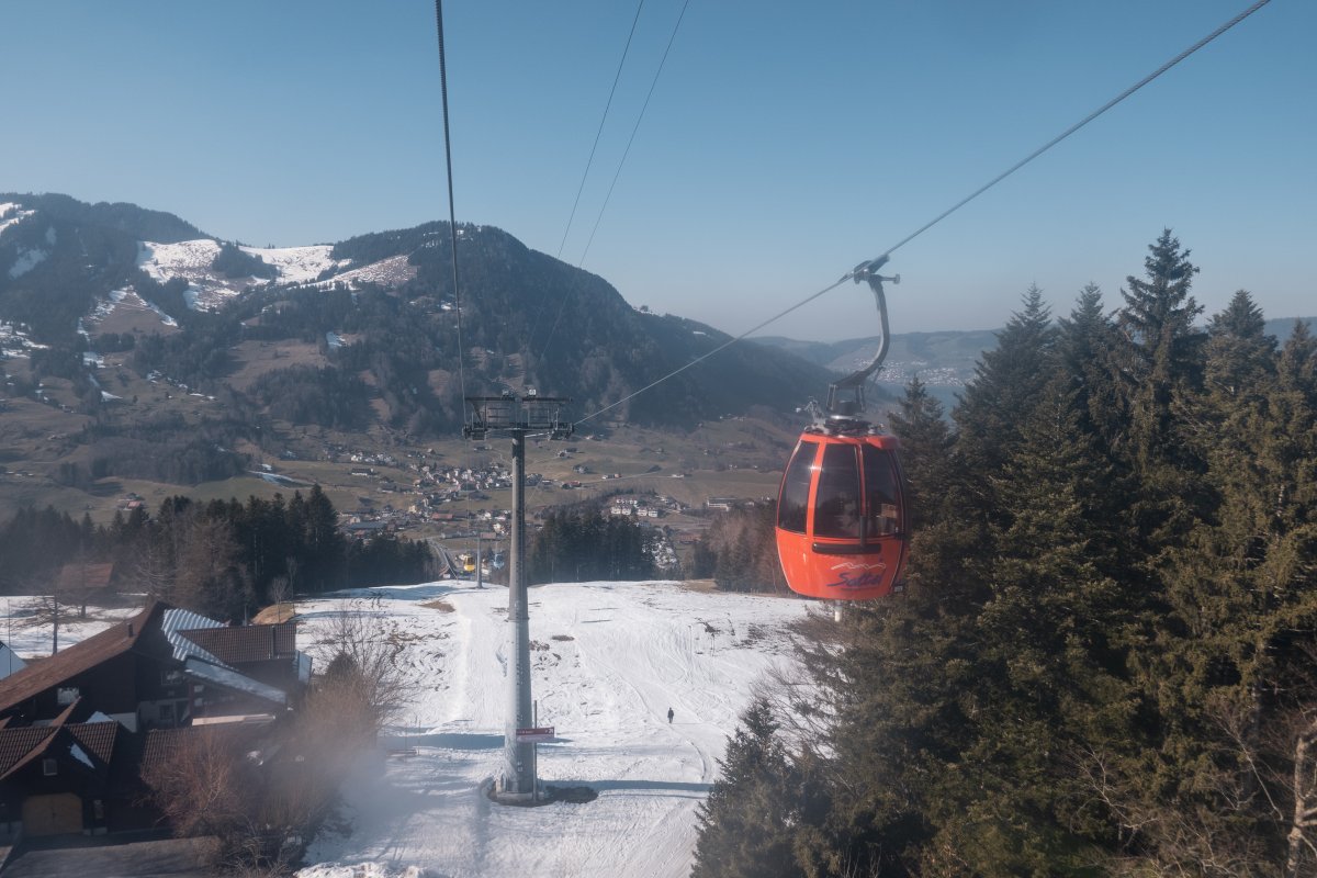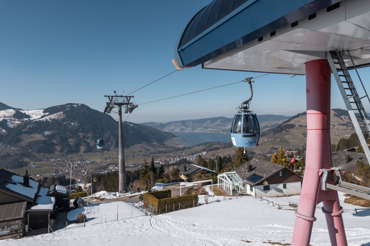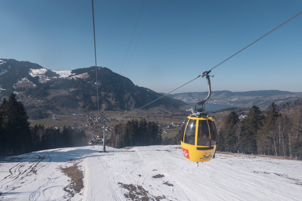 Die Seilbahn Sattel-Mostelberg überwindet einen Höhenunterschied von 408 Metern.