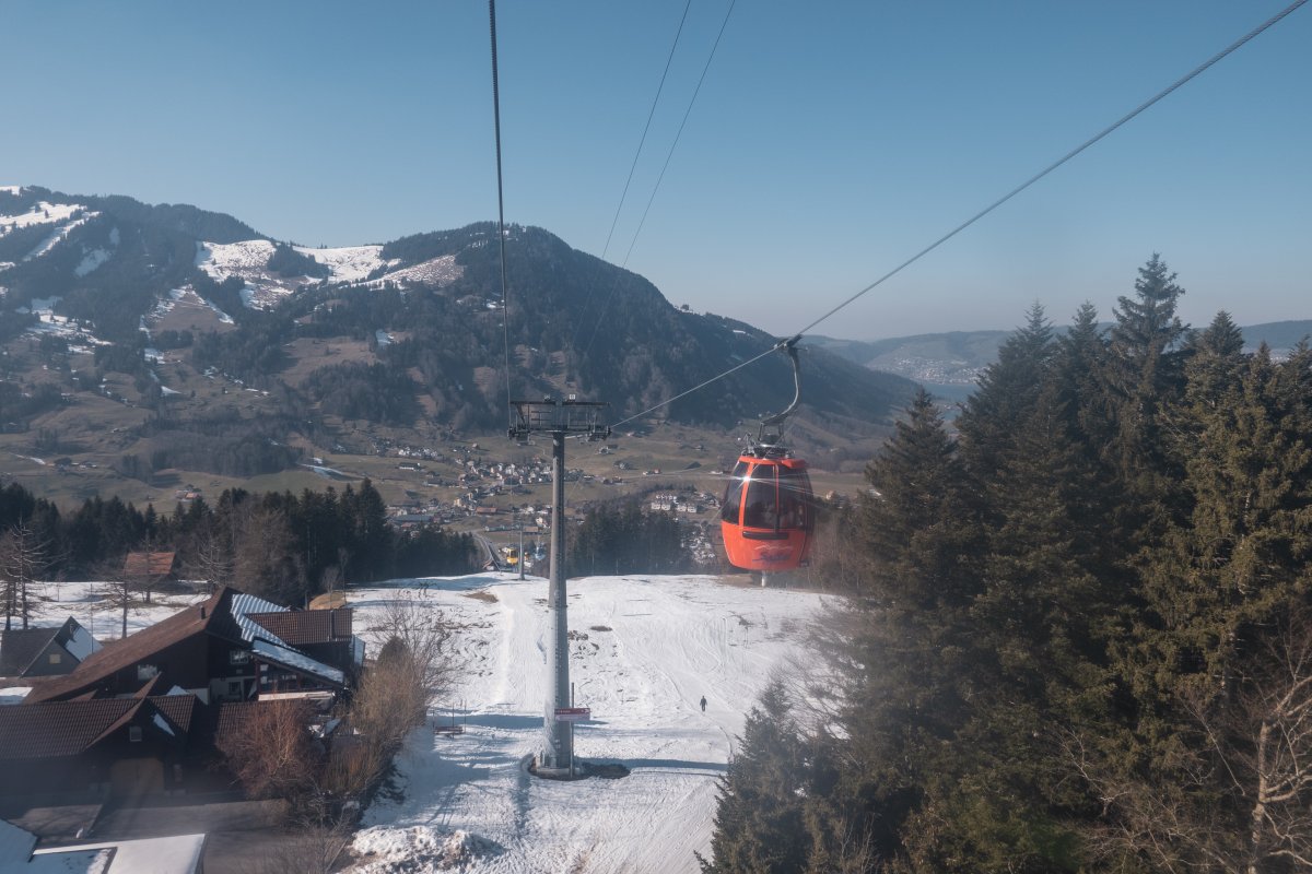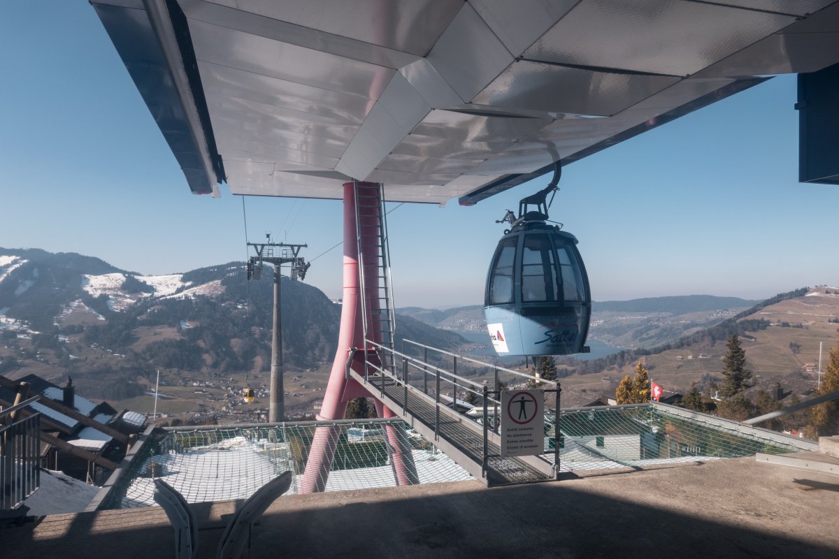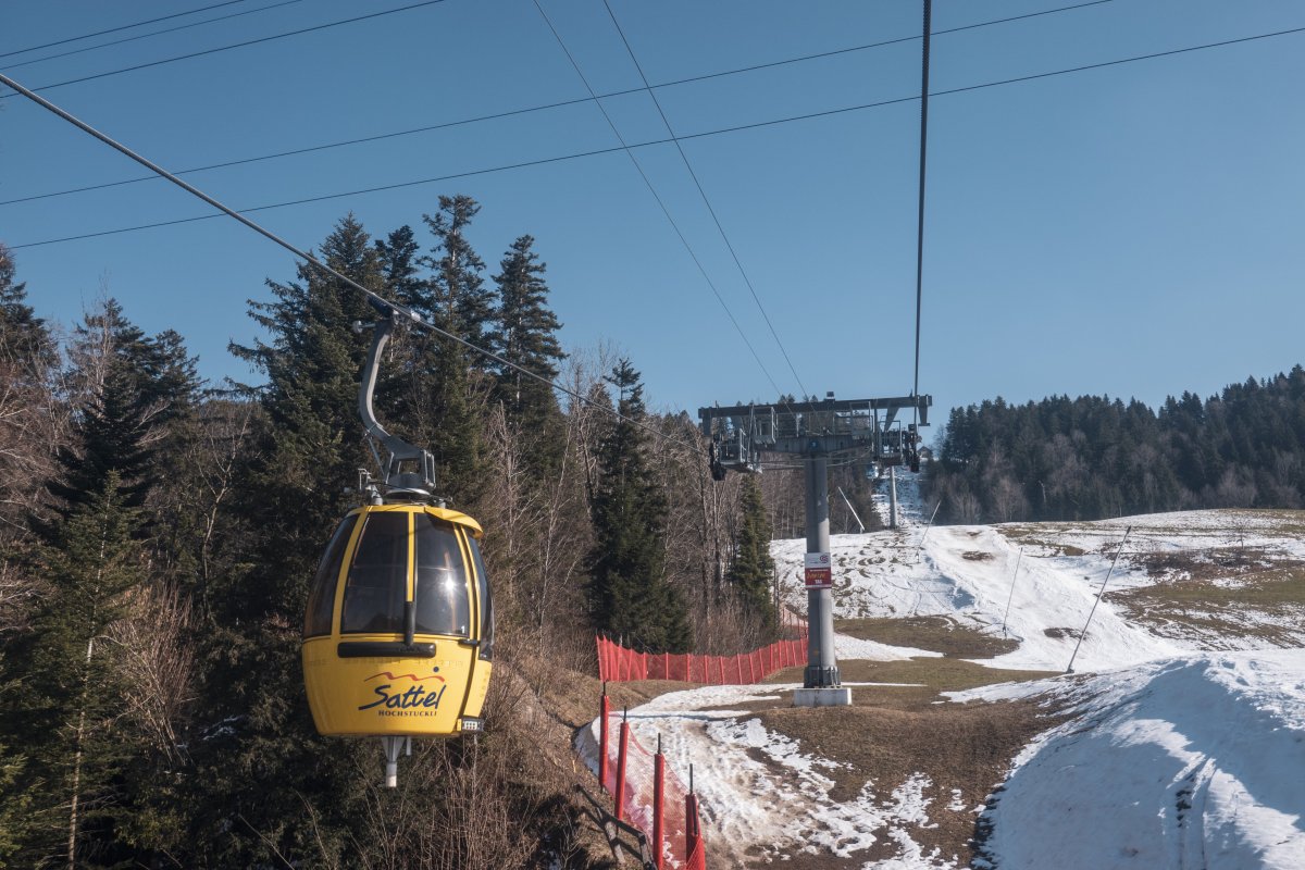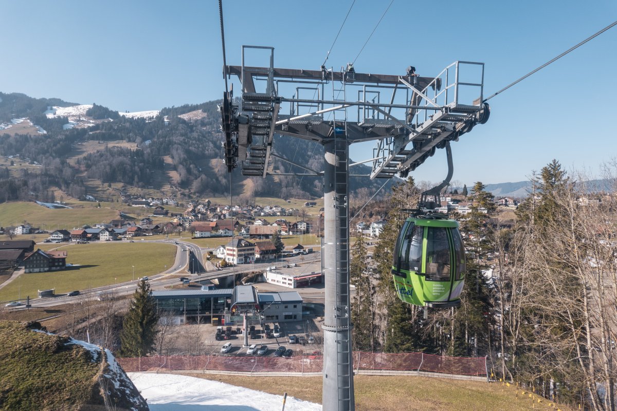 Die Seilbahn Sattel-Mostelberg überwindet einen Höhenunterschied von 408 Metern.
