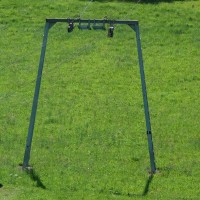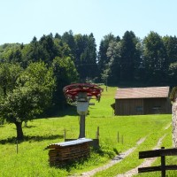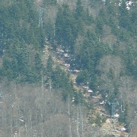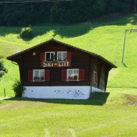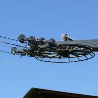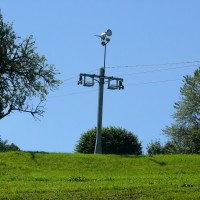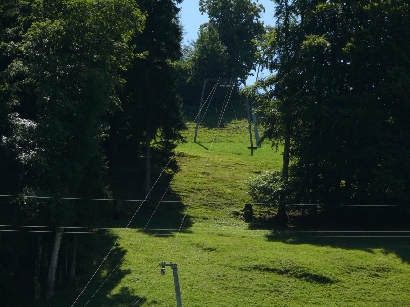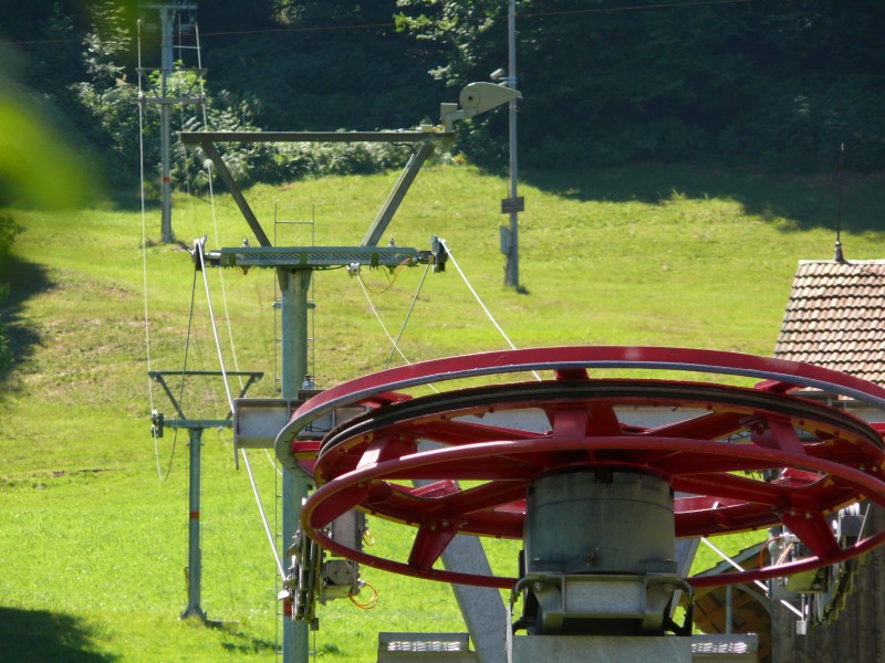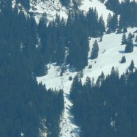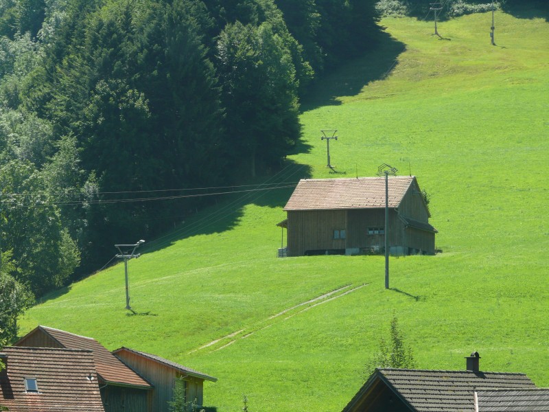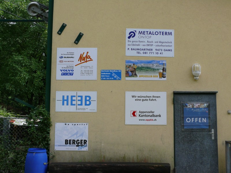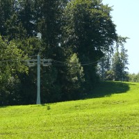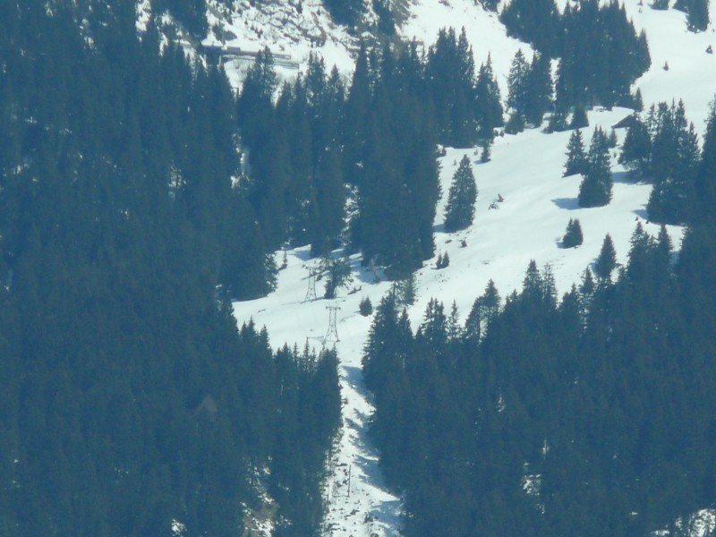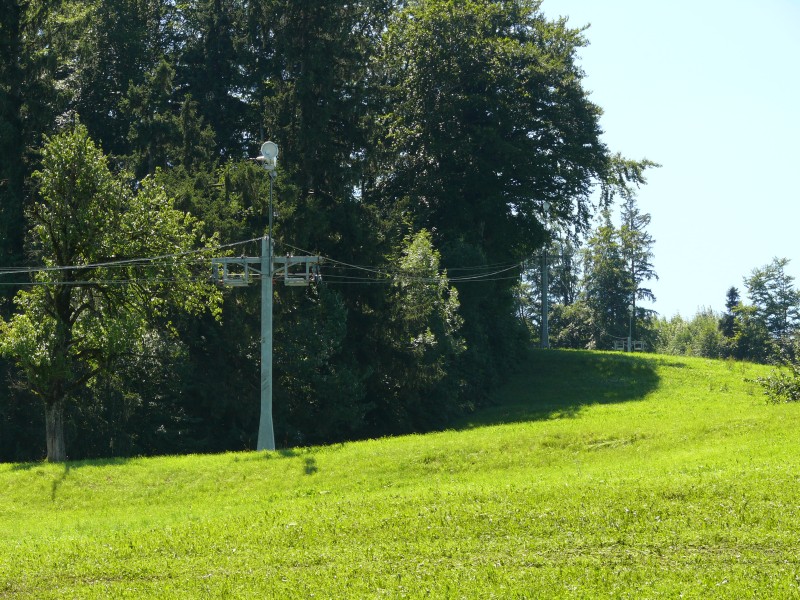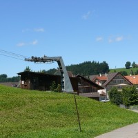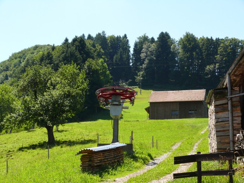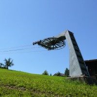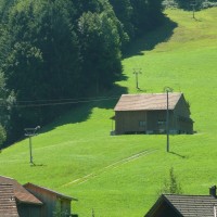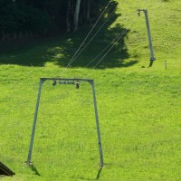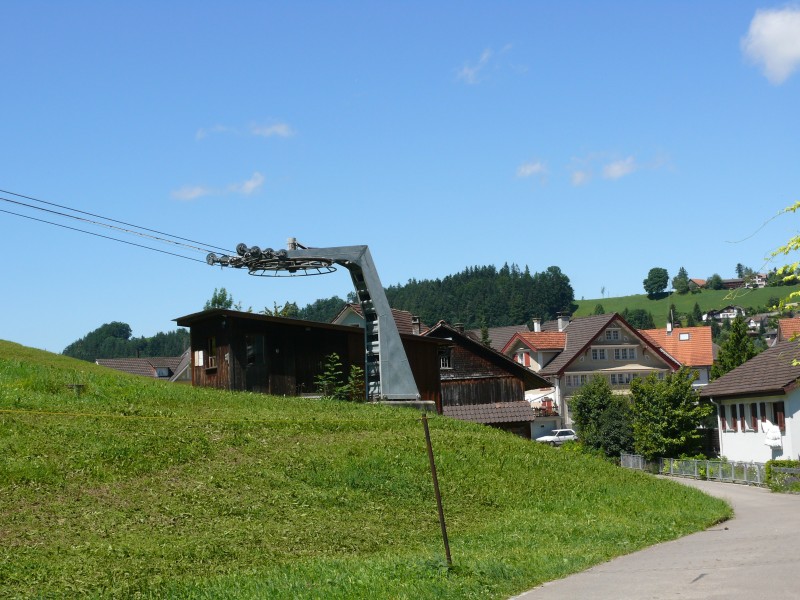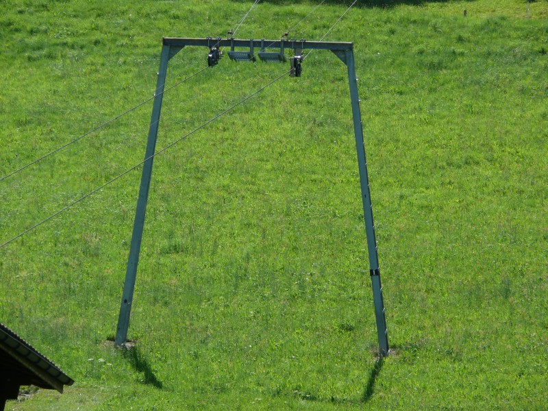 Gleich neben der Luftseilbahn von Ragnatsch steht noch eine weitere kleine Luftseilbahn. Wie es aussieht, besitzt auch sie Stützen von der alten Wangser Oehler-Kabinenbahn am Pizol, die restlichen verwendet die Luftseilbahn am Kleinberg in Flums, März 2008