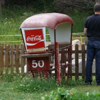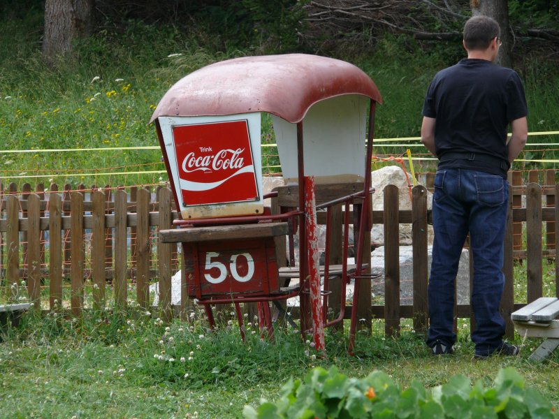 Eine Kabine der Vorgängerbahn Känzeli-Brambrüesch, eine Giovanola-2er Kabinenbahn, Juli 2009