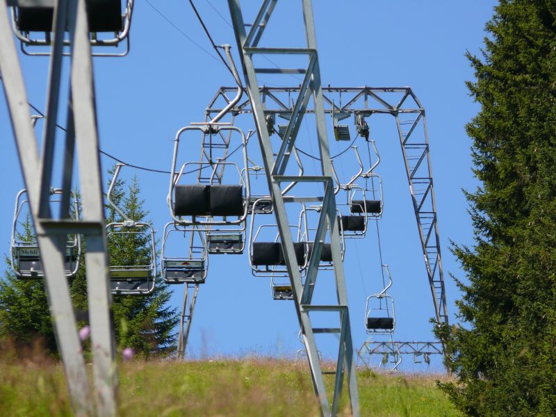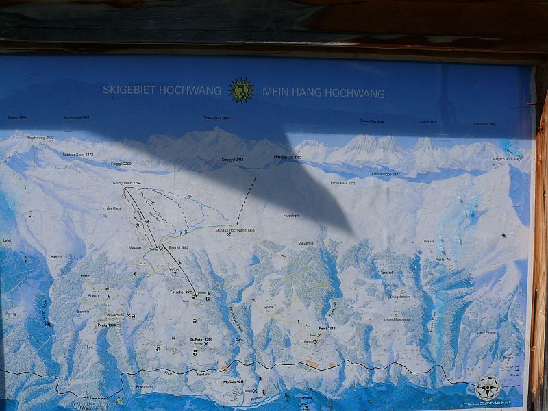 Zwei Sektionen Sesselbahn und Schlepplift erschliessen ein weitläufiges Pistenareal an den sonnigen Hängen des Hochwang oberhalb von St. Peter im Schanfigg.