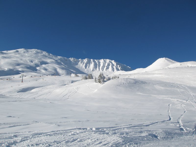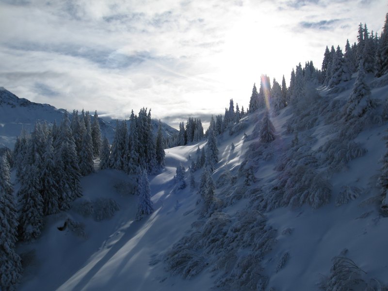 Blick vom Piz Scalottas ins Skigebiet Sarn am Heinzenberg, Dezember 2008
