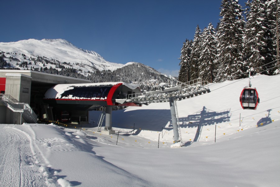Talstation der im Sommer 2010 neu gebauten Kabinenbahn Canols-Scharmoin von Garaventa, Dezember 2010