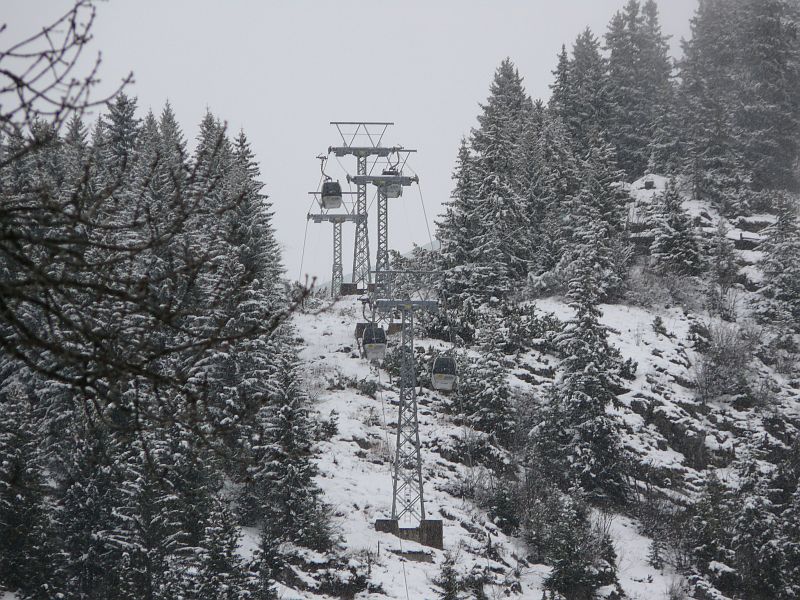 Kabinenbahn Berneuse mit steiler Ausfahrt, März 2008