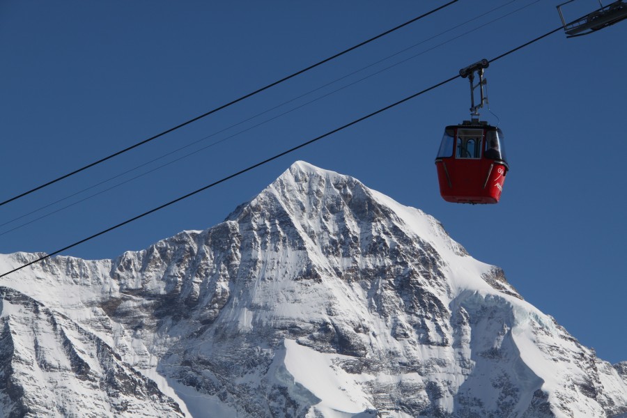 Kabinenbahn Holenstein-Männlichen mit dem Eiger, März 2011