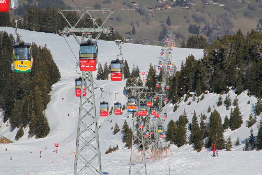 Strecke der Luftseilbahn Wengen-Männlichen, März 2011