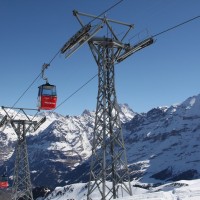 Grosses Skigebiet mit weitgehend kuppelbaren Anlagen von Habegger, Von Roll und Doppelmayr zwischen Grindelwald und Wengen mit Skihängen am Männlichen und Lauberhorn.