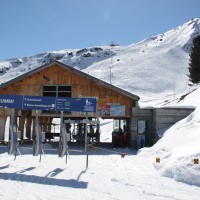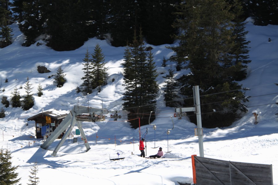 Blick auf die ehemalige Habegger-Sesselbahn Gummi, die durch eine wesentlich kürzere, weiter oberhalb gelegene Bahn ersetzt wurde, März 2011