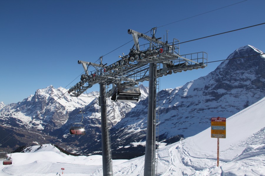 Grosses Skigebiet mit weitgehend kuppelbaren Anlagen von Habegger, Von Roll und Doppelmayr zwischen Grindelwald und Wengen mit Skihängen am Männlichen und Lauberhorn.