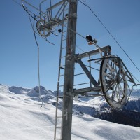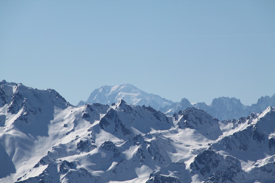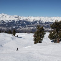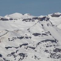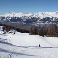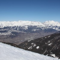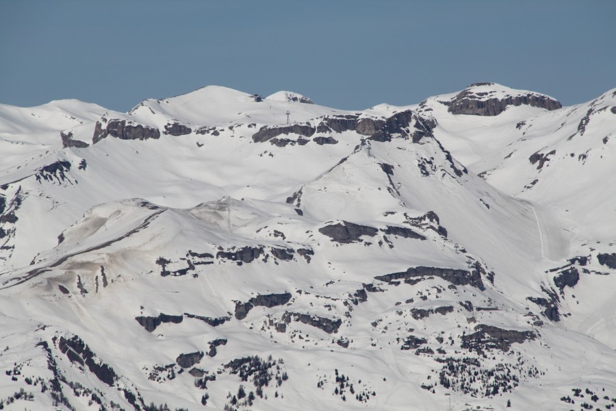 Zoom zum nahe gelegenen Crêt du Midi im Skigebiet von Vercorin, März 2012