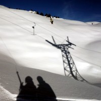 Ausstieg des Schlepplifts Alp Sarn, der etwas unterhalb der eigentlichen Bergstation angesiedelt ist. Der Sesselbahnausstieg wäre oberhalb der hier sichtbaren Doppelstütze, Dezember 2012