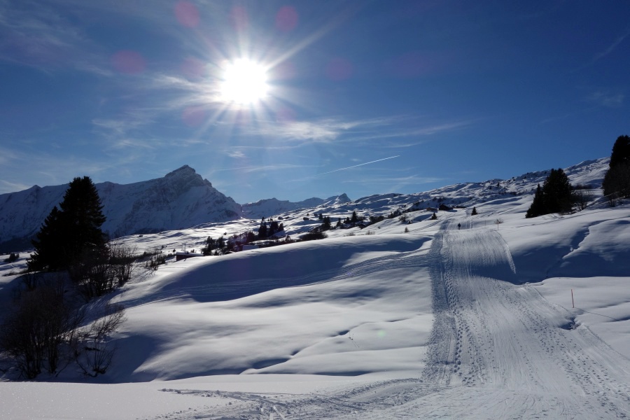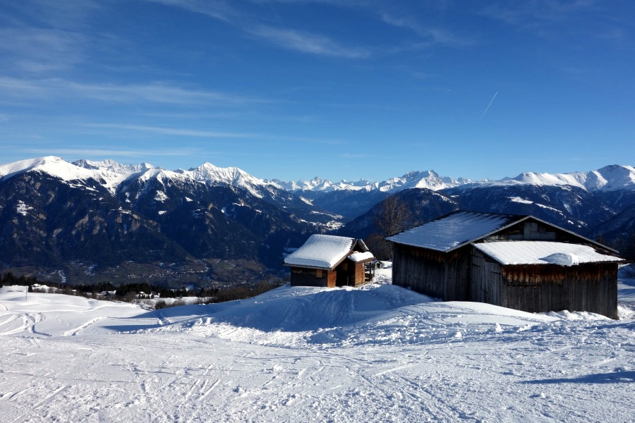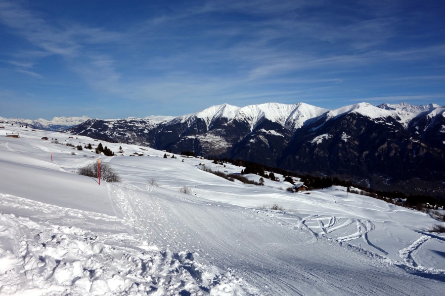 Panorama an der Bergstation des Schlepplifts Alp Sarn, Dezember 2012