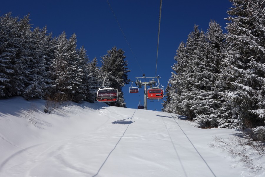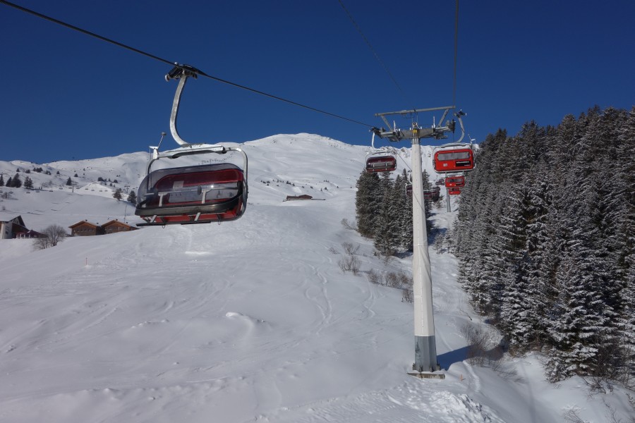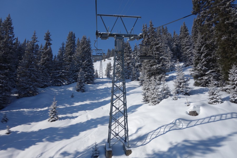 Unterwegs in der Sesselbahn Rungg-Stätzertäli von Leitner, März 2013
