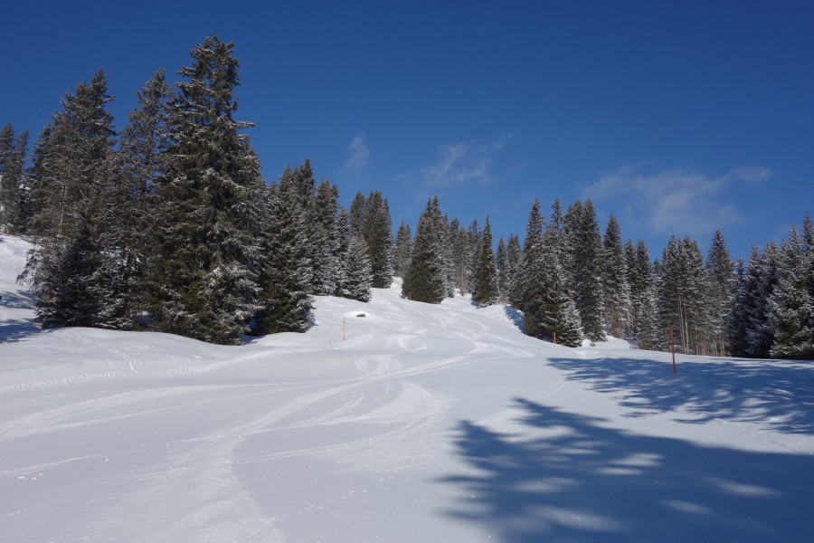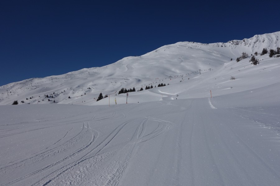 Blick von der Bergstation Sesselbahn Churwalden-Alp Stätz auf die Hänge am Stätzerhorn, März 2013