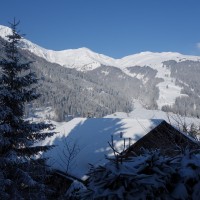 Blick vom Gegenhang auf das Skigebiet Pradaschier in Churwalden, März 2013