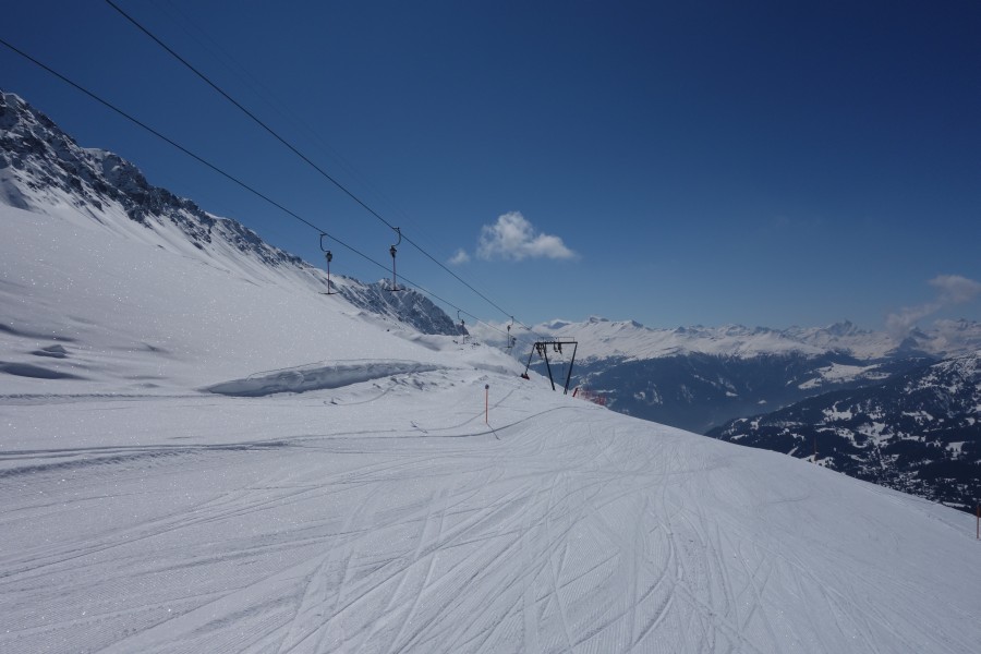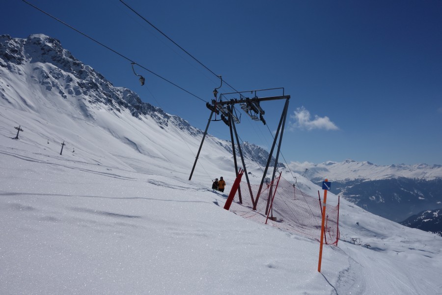 Abfahrt an der Sesselbahn Motta-Schwarzhorn, März 2013