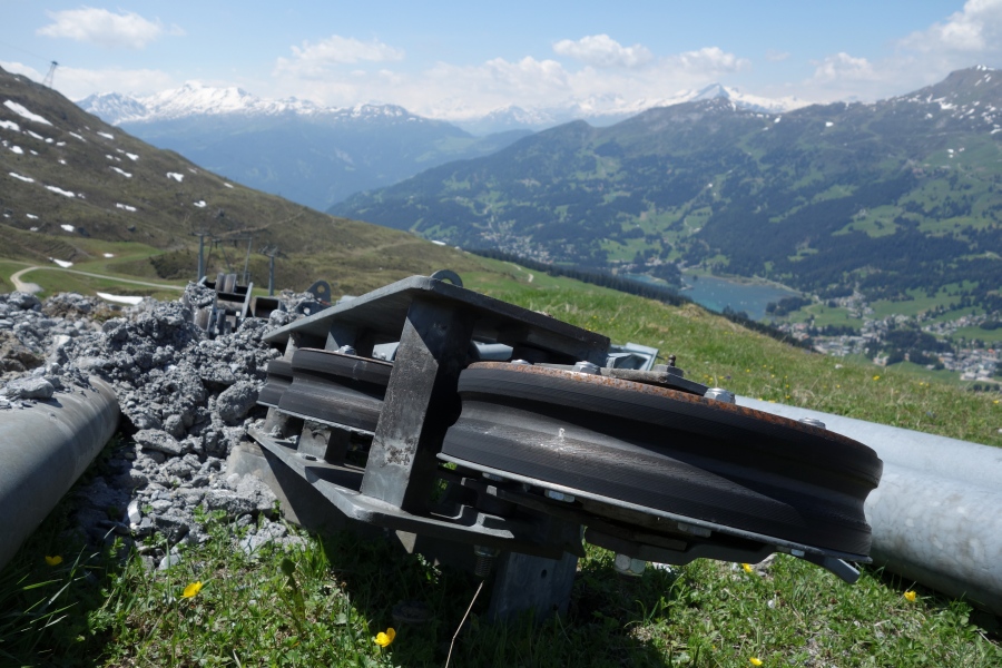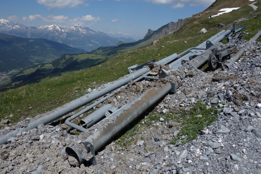 Abgebaute Stütze des Schlepplifts Weisshorn 2, Juni 2013