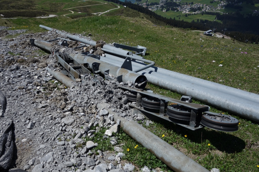 Bereits abgebaute Stütze Nr. 5 des Schlepplifts Weisshorn 2, Juni 2013