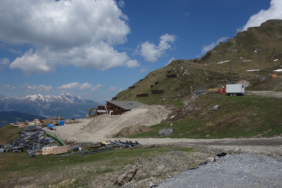Bauarbeiten an der Talstation der Sesselbahn Motta-Schwarzhorn, Juni 2013