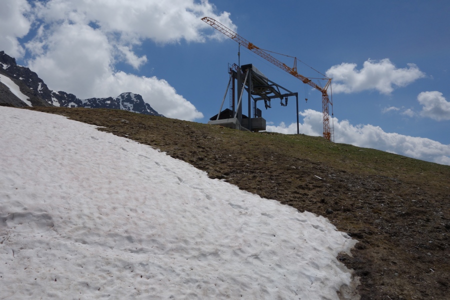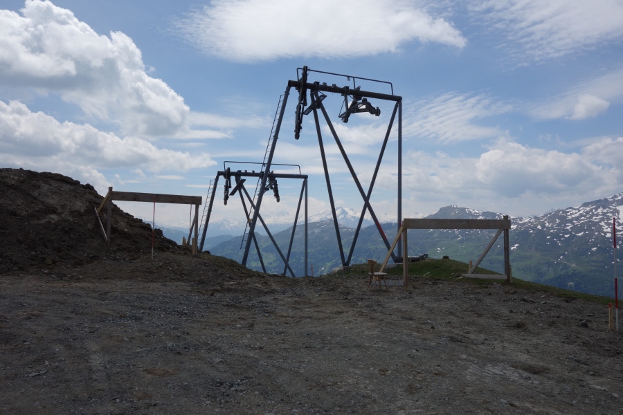 Ehemaliger Ausstiegsbereich des Schlepplifts Weisshoen 2, wo zukünftig die Sesselbahn Heimberg-Motta ihre Bergstation haben wird, Juni 2013