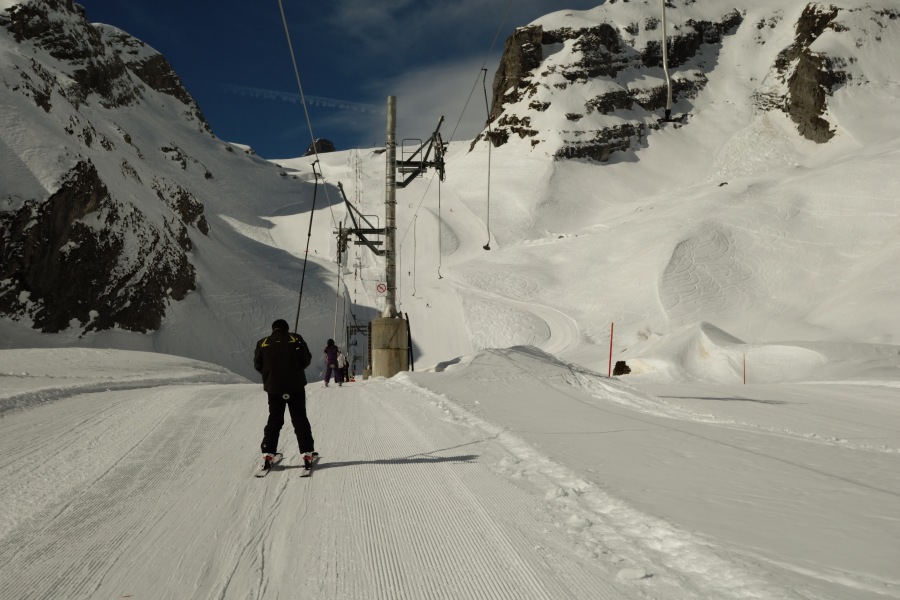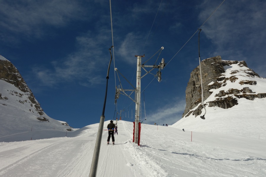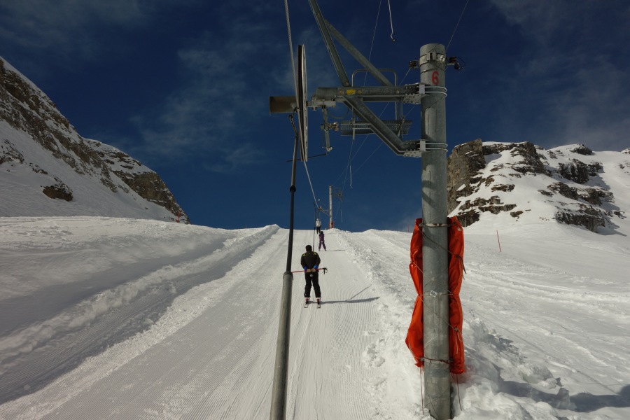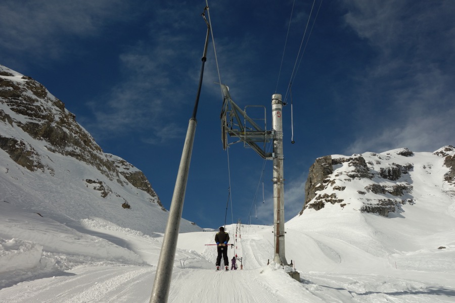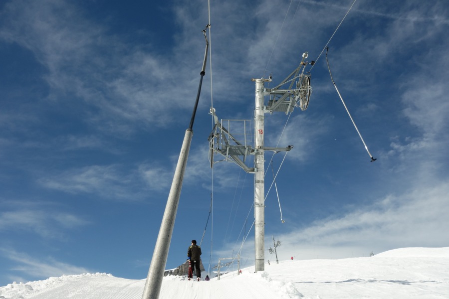 Schlepplift Tsantonnaire, der zum höchsten Punkt des Gebietes führt, März 2014