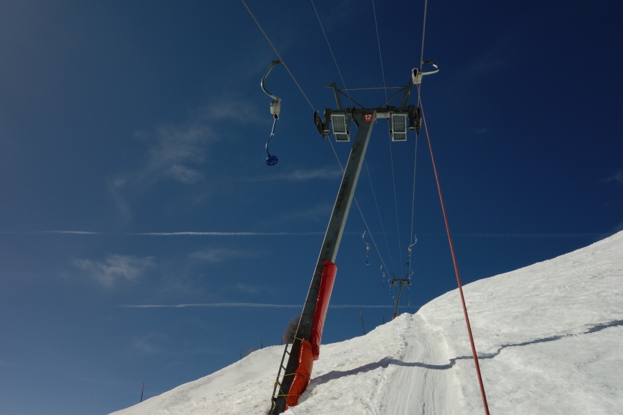 Schlepplift Châtillon - im unteren Bereich wurden die Stützen der Vorgängeranlage weiterverwendet, März 2014