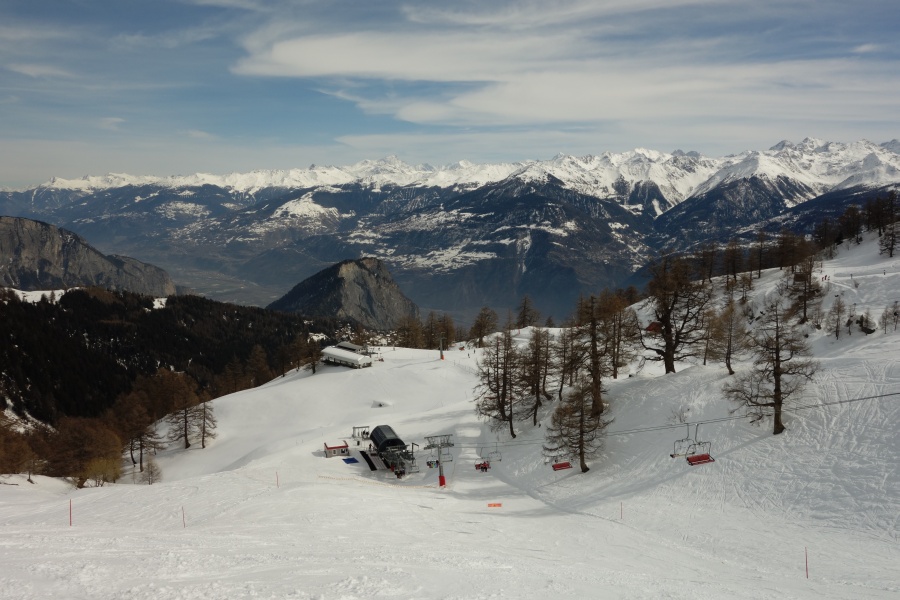 Panorama von der Bergstation des Schlepplifts Châtillon ins Rhônetal, März 2014