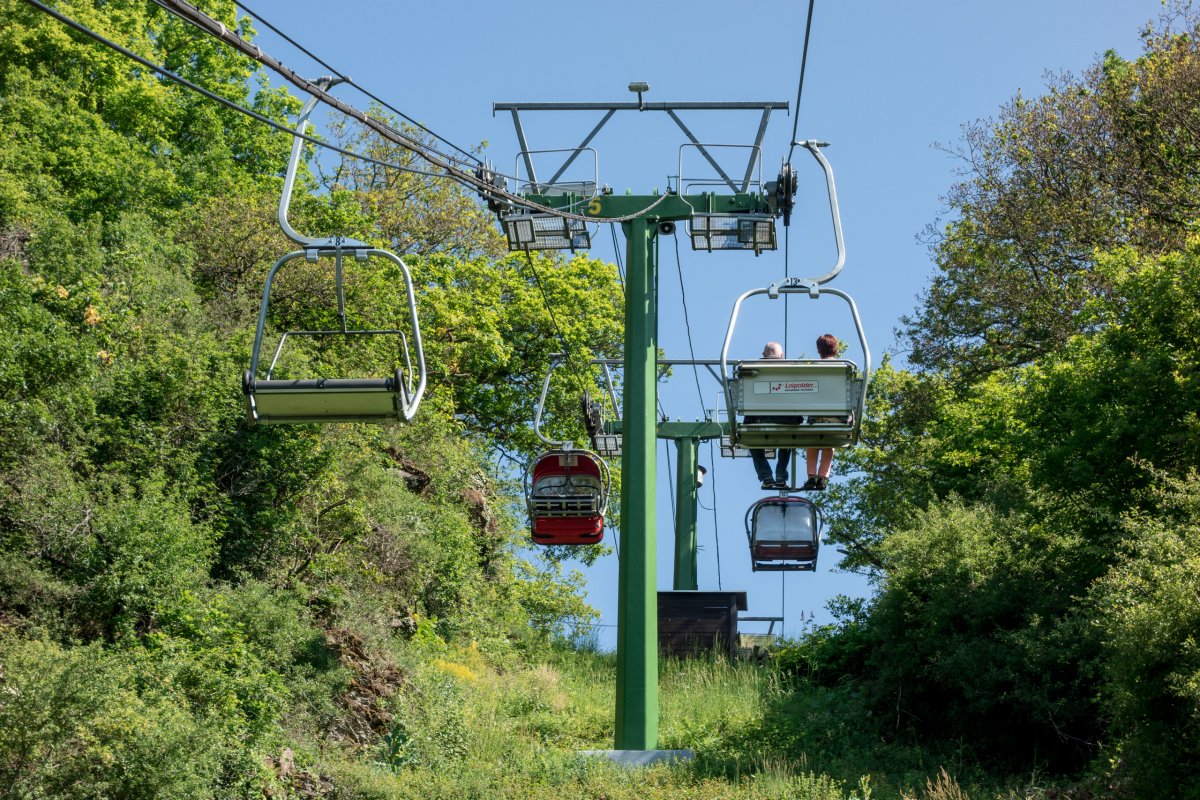 Die Sesselbahn zum Pinnerkreuz in Cochem wurde 1954 von der Firma Pohlig konstruiert, mehrmals umgebaut und erschliesst eine schöne Aussicht auf die Mosel.