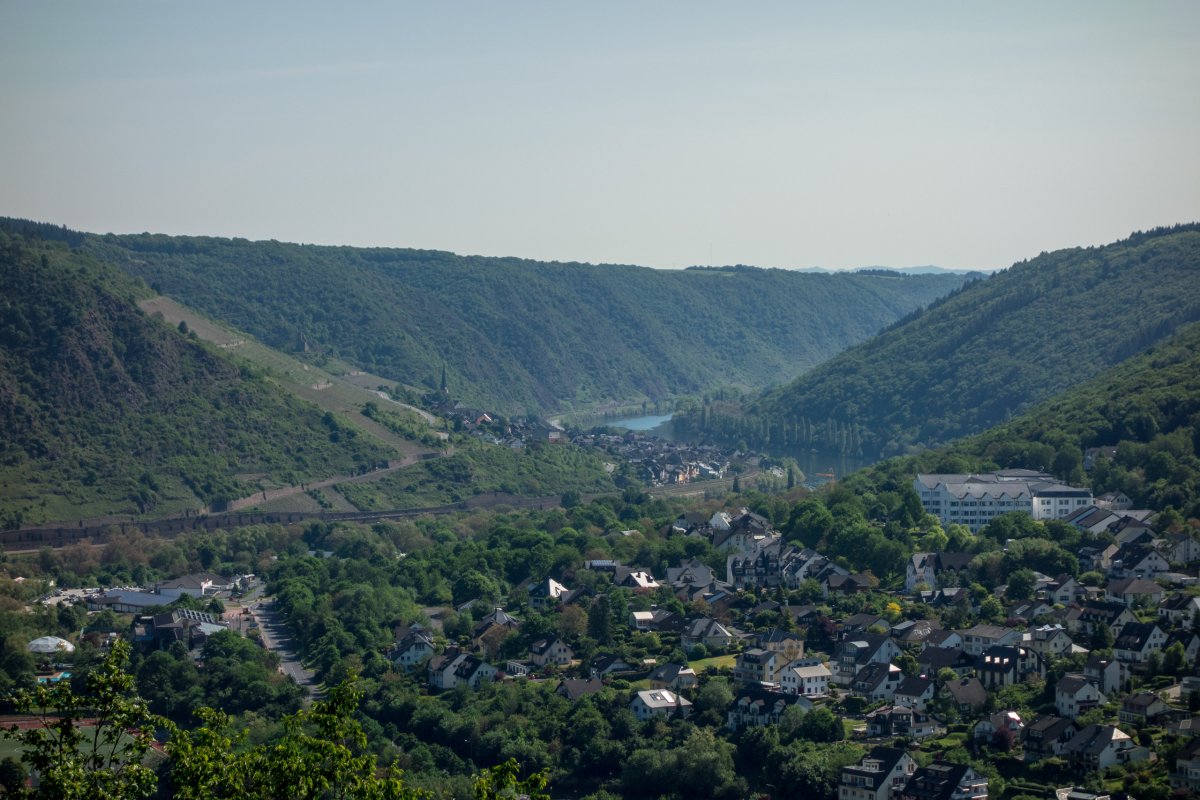 Panorama vom Pinnerkreuz auf Cochem und die Mosel, Mai 2017