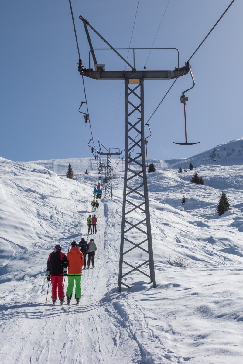 Skigebiet in der Surselva, ein schöner Mix aus alten und modernen Anlagen, vom alten Bühler-Kurzbügler bis hin zur modernen Garaventa-6er Sesselbahn.