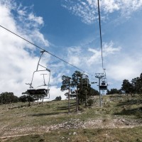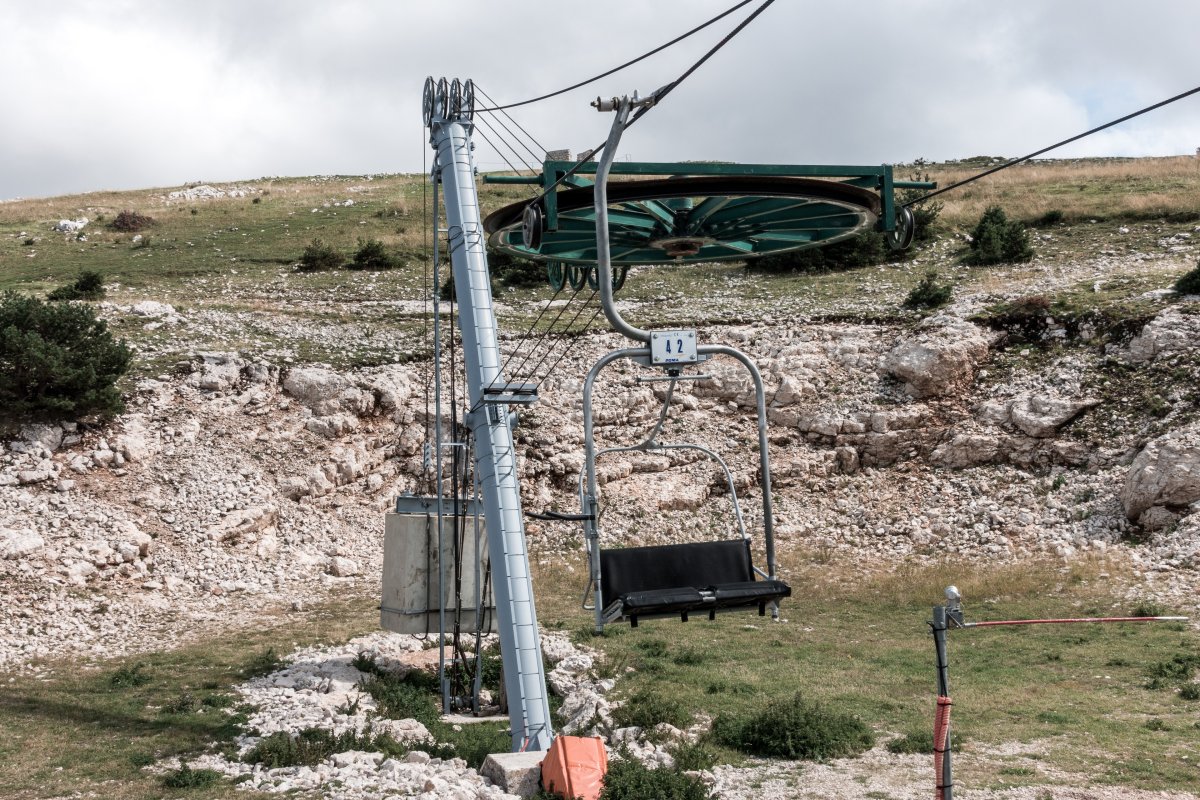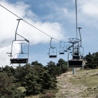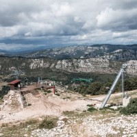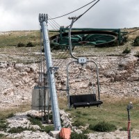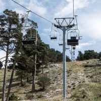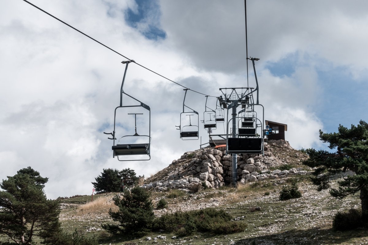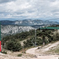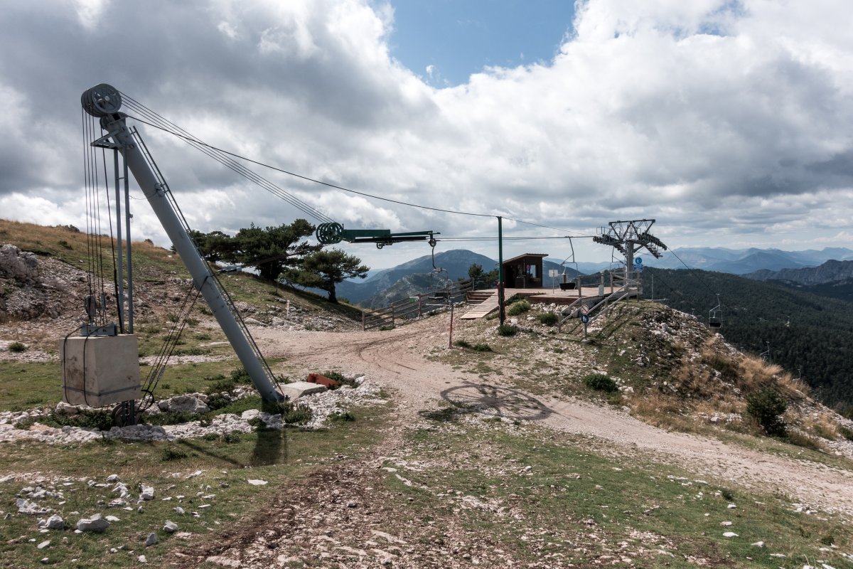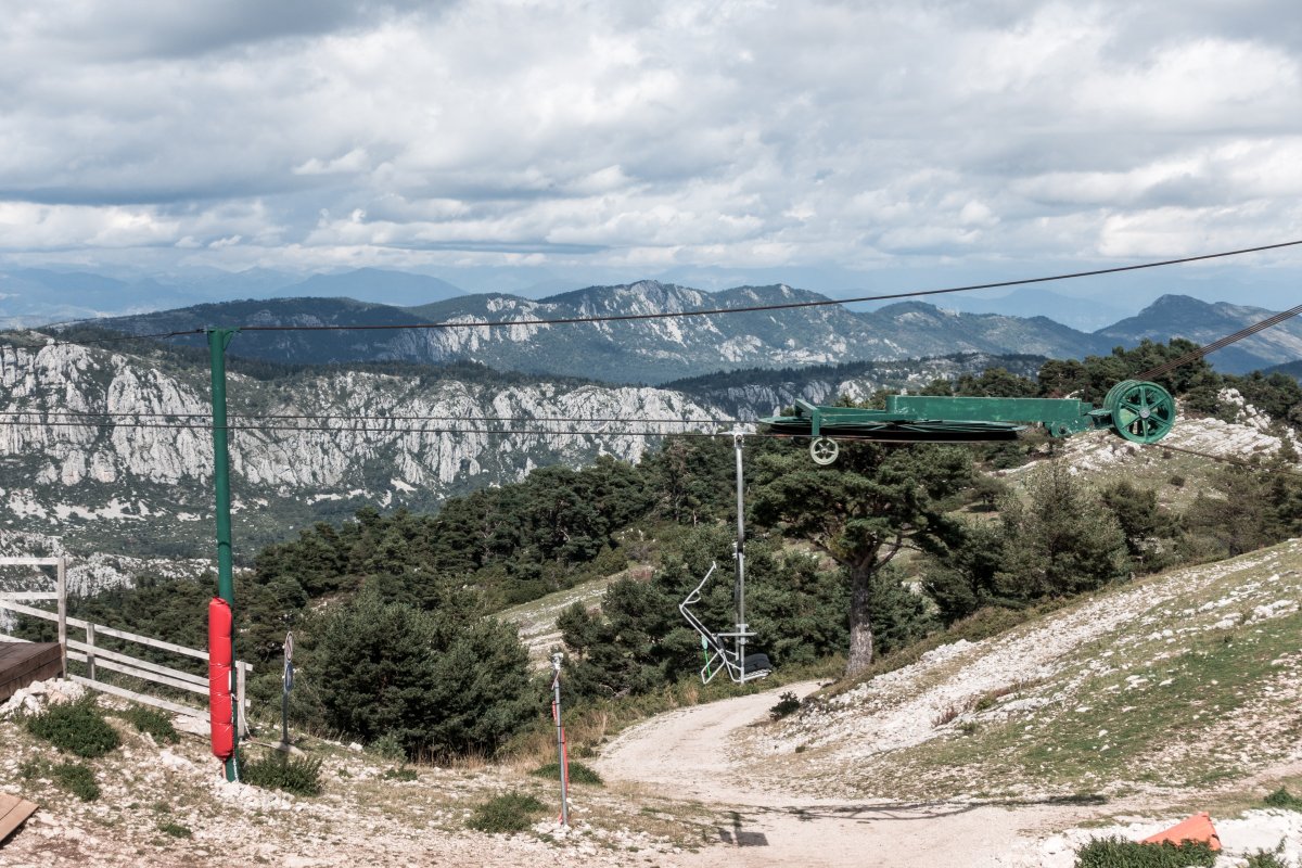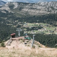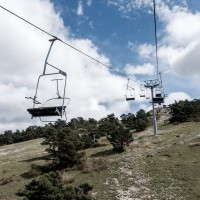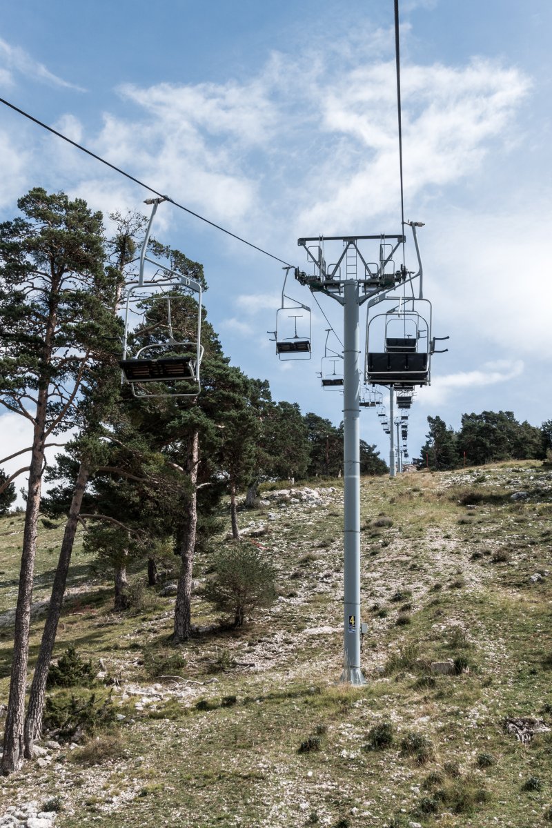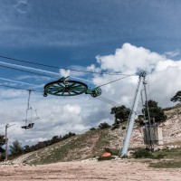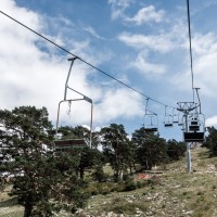 Kleines Skigebiet mit einigen Schleppliften und einer Sesselbahn von Poma mit fliegender Umlenkscheibe. Von der Bergstation Blick aufs Mittelmeer.