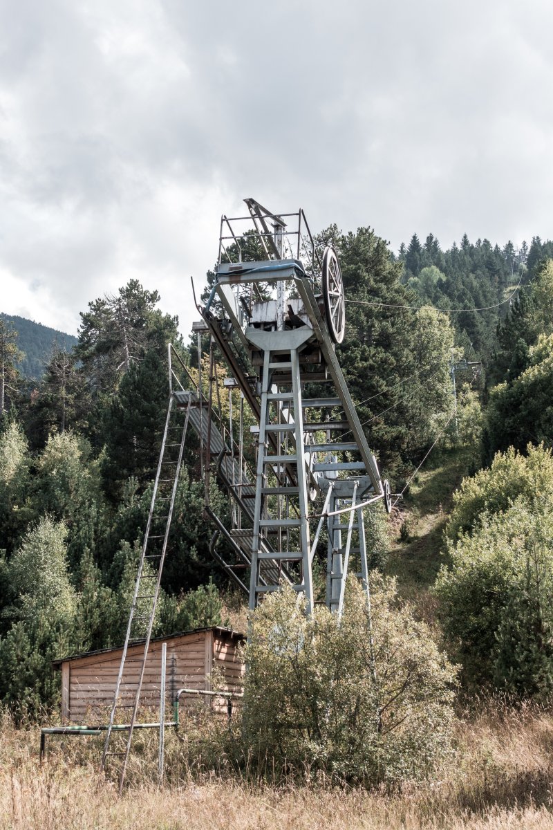 Rund um Font-Romeu in den östlichen Pyrenäen finden sich zahlreiche Skigebiete. Ein besonderer Seilbahn-Leckerbissen findet sich in La Cabanasse, wo eine Ruine eines Poma-Schlepplifts aus den 40er Jahren steht.