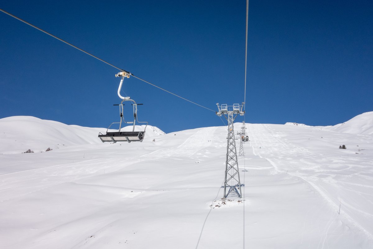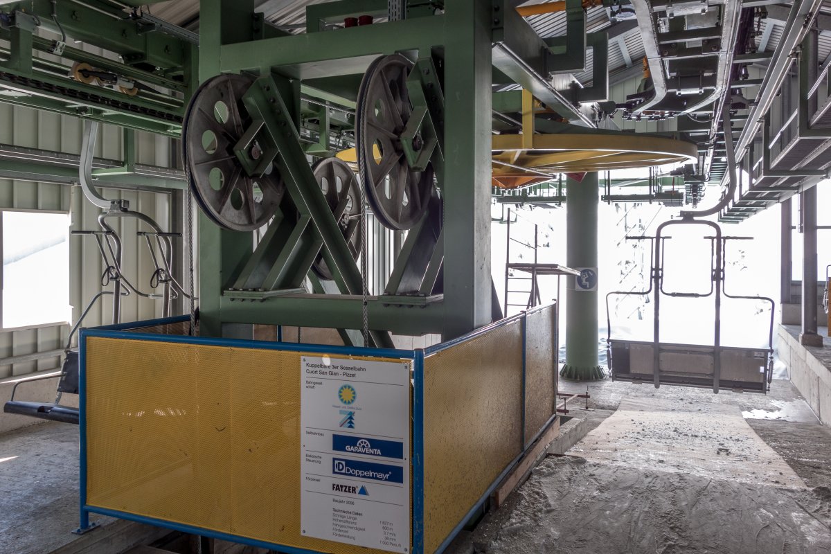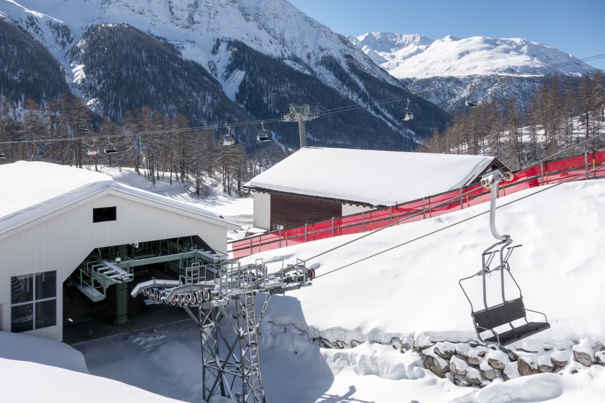 Talstation der Sesselbahn Chastlatsch, März 2019