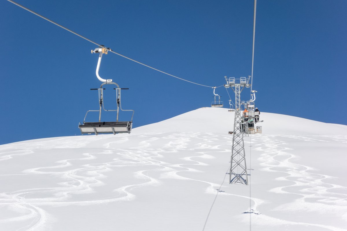 Automatische Schliessbügel an der Sesselbahn Chastlatsch, März 2019