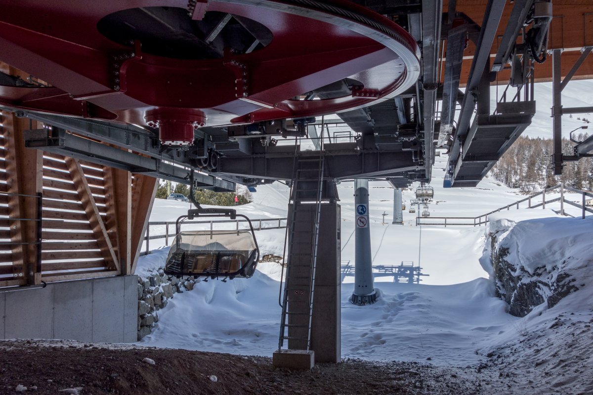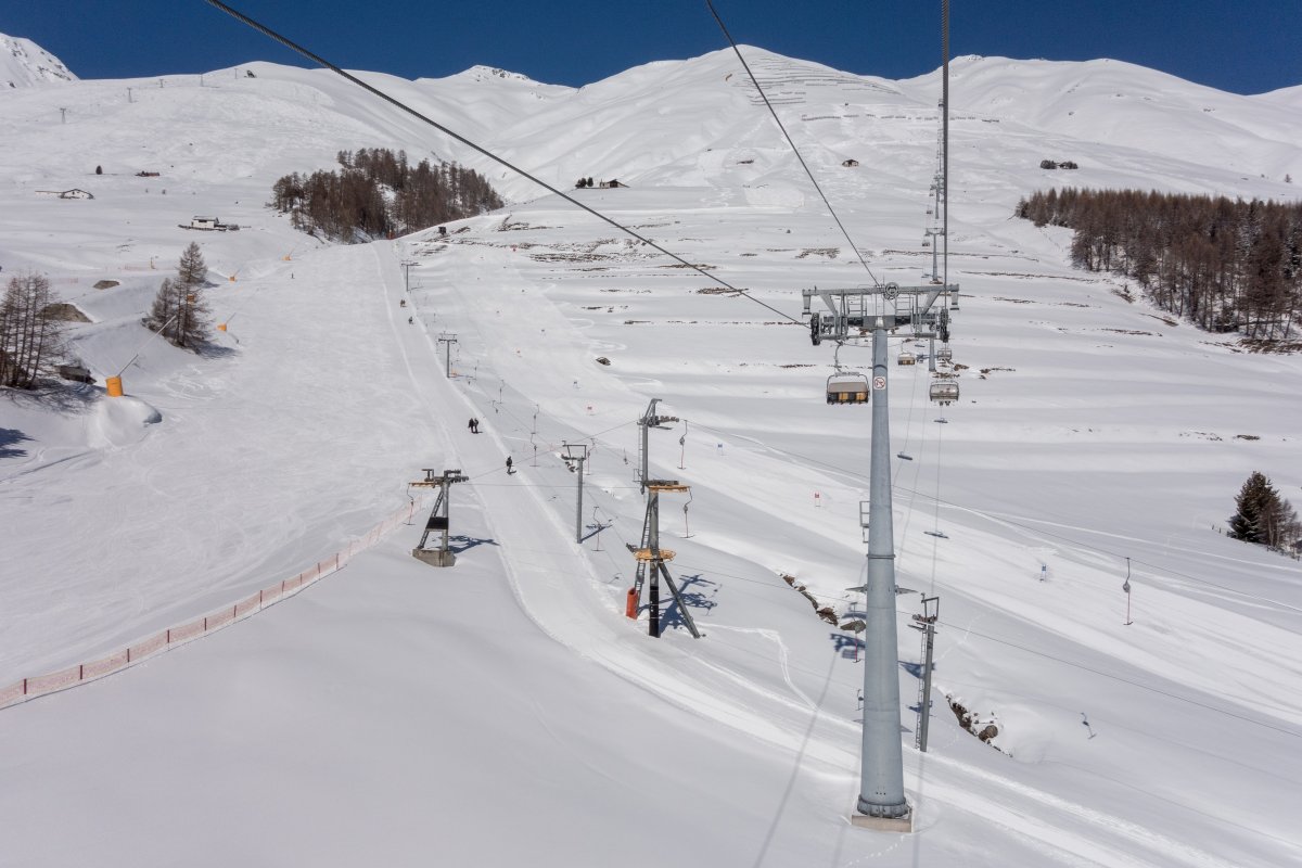 Abfahrt an der Sesselbahn Pizzet, März 2019