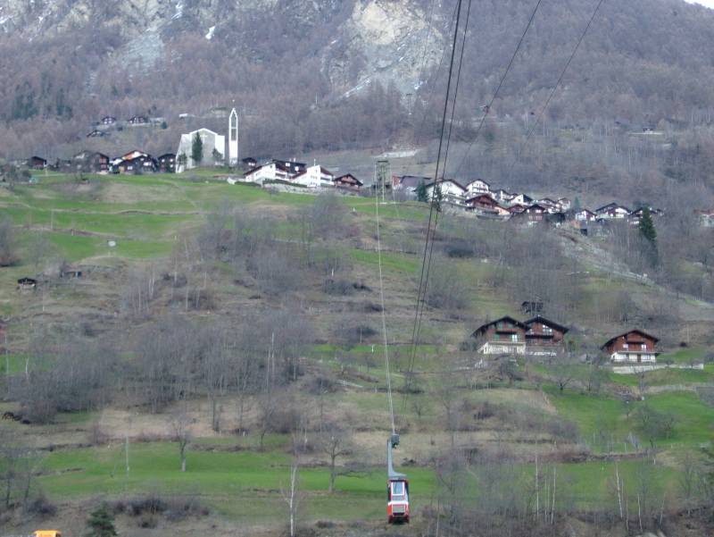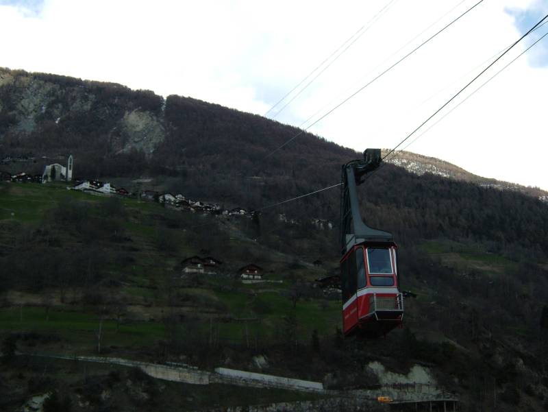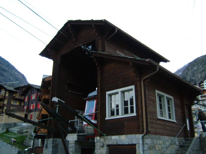 Talstation der Luftseilbahn Stalden-Staldenried, April 2006