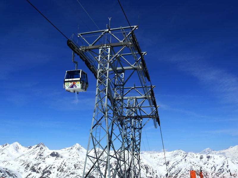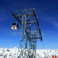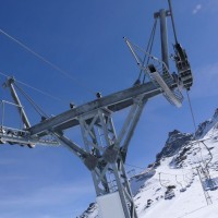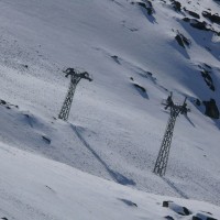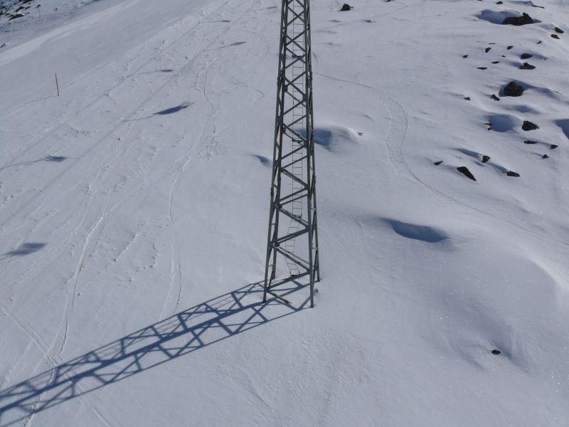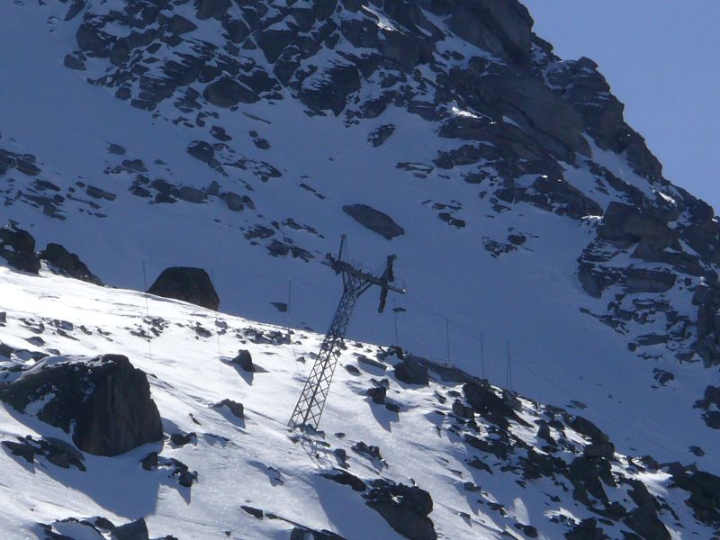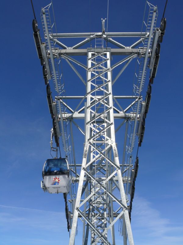 Zoom zur imposanten letzten Stütze der Seetalhorn-Kabinenbahn, April 2009