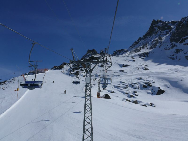 Die dritte Anlage, die auf dem Seetalhorn endet, ist die 1997 neu erschlossene Sesselbahn Stafel-Seetalhorn, die seither die beiden Teilgebiete Seetalhorn und Hannigalp miteinander verbindet, April 2009