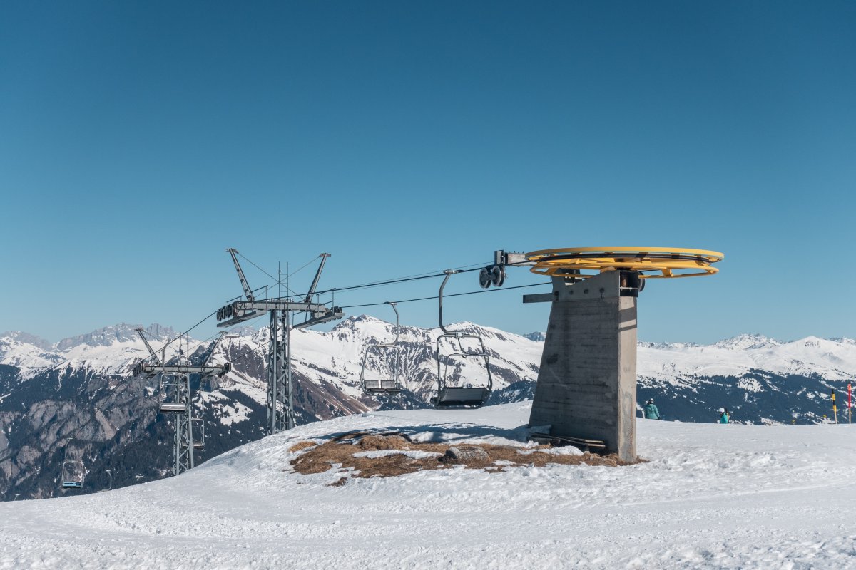 Ein ehemaliger Kombilift von Müller und eine Sesselbahn von Bühler, beide saniert durch Bartholet, erschliessen oberhalb der Stadt Chur das Skigebiet Brambrüesch mit beeindruckender Aussicht ins Rheintal.