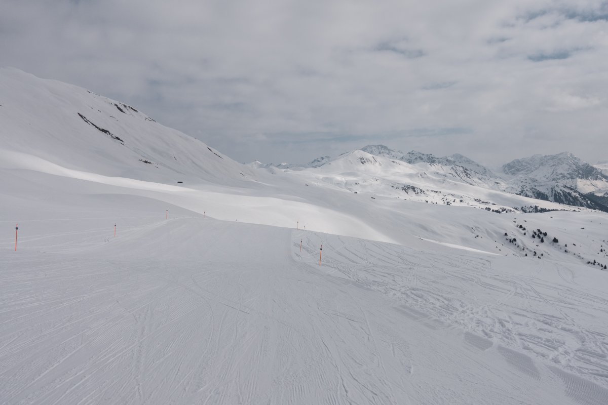 Zwei Sektionen Sesselbahn und Schlepplift erschliessen ein weitläufiges Pistenareal an den sonnigen Hängen des Hochwang oberhalb von St. Peter im Schanfigg.