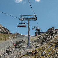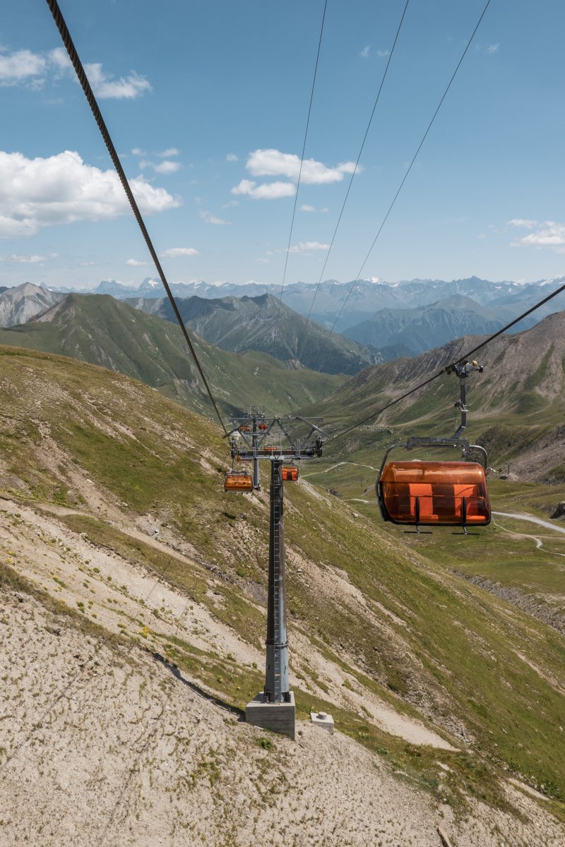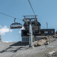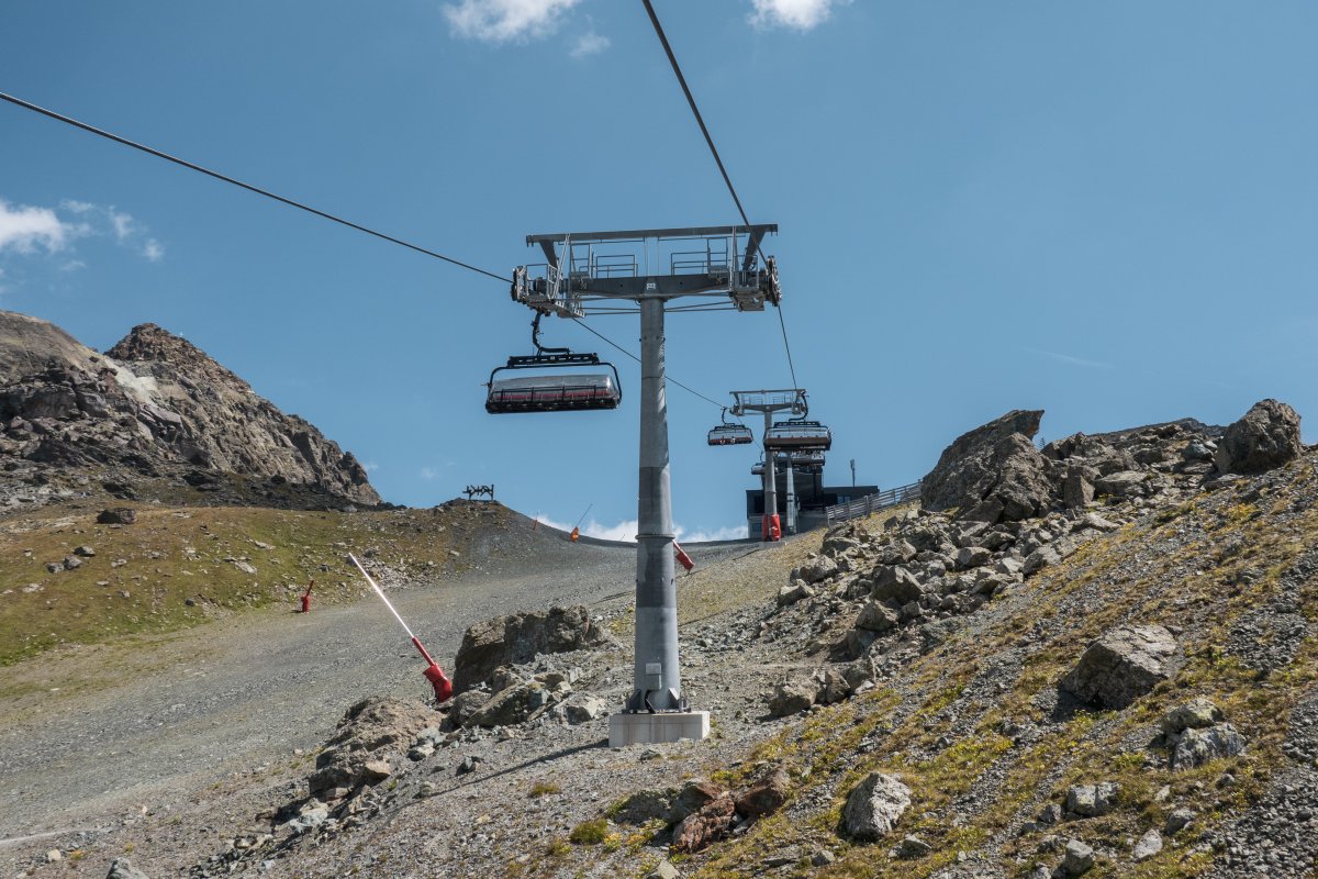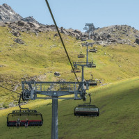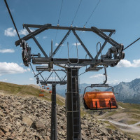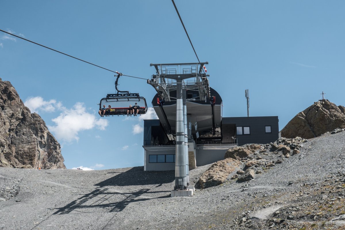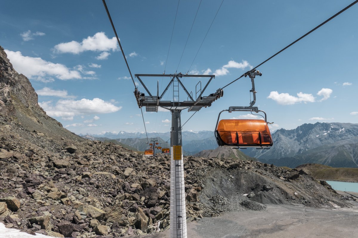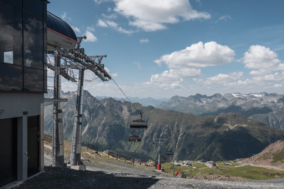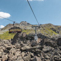 Fahrt mit dem Funitel Silvrettabahn von Ischgl zur Idalp und weiter zur Alp Trida in Samnaun auf Schweizer Seite der Silvretta Arena.