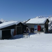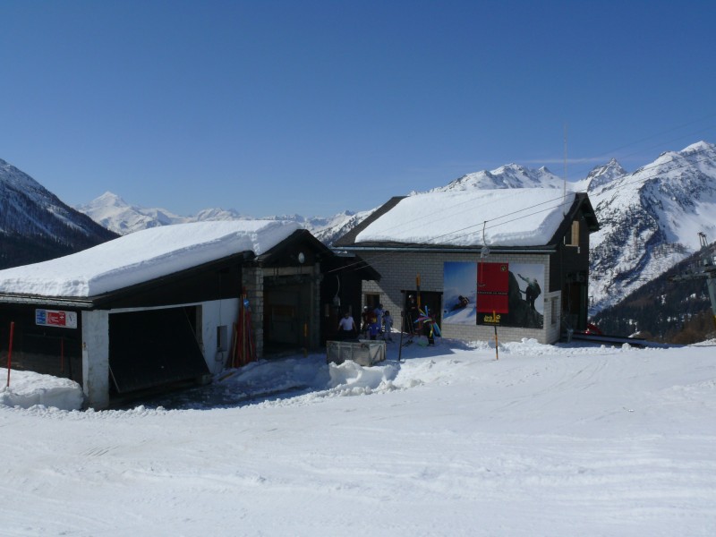 Talstationen der Sesselbahn und des Schlepplifts Lauchernalp-Stafel, die das Übungsgelände erschliessen und Zubringer zu den oberen Bahnen sind, April 2009