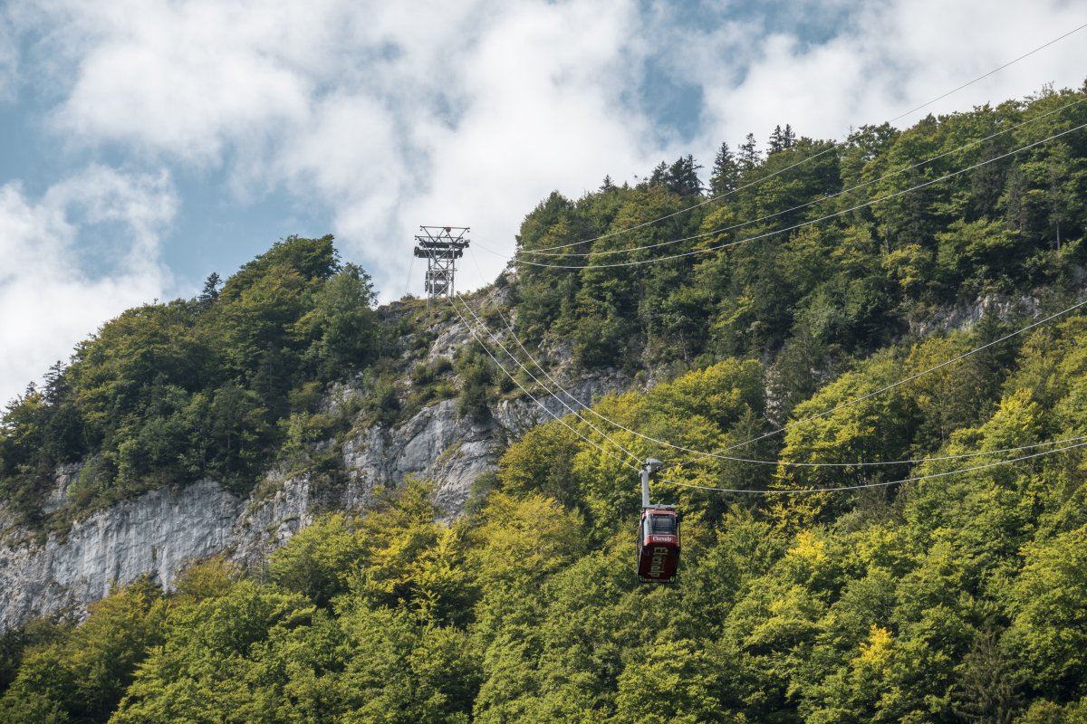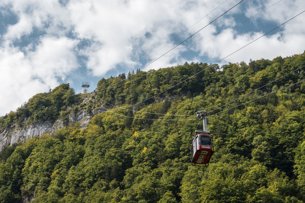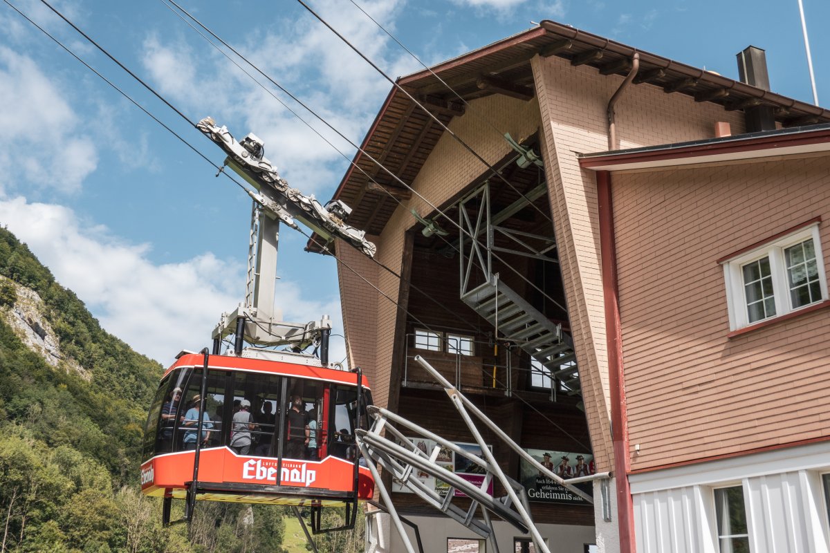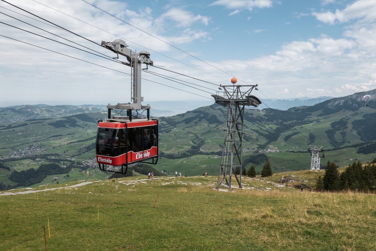 1955 als eine der ersten Luftseilbahnen der Ostschweiz durch Habegger erstellt, ist die Pendelbahn zur Ebenalp heute in modernisierter Form von Garaventa in Betrieb.