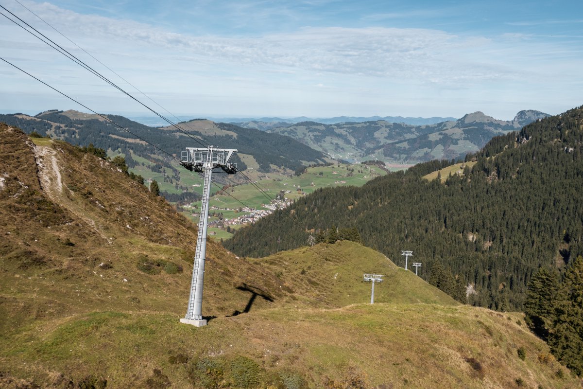 Zahlreiche kuppelbare Sesselbahnen von Doppelmayr erschliessen die Hänge am Hoch-Ybrig. Mit einer Garaventa-Pendelbahn aus den frühen 1970er Jahren als Zubringer besitzt das bekannte Skigebiet aber auch noch einen echten Seilbahn-Klassiker.