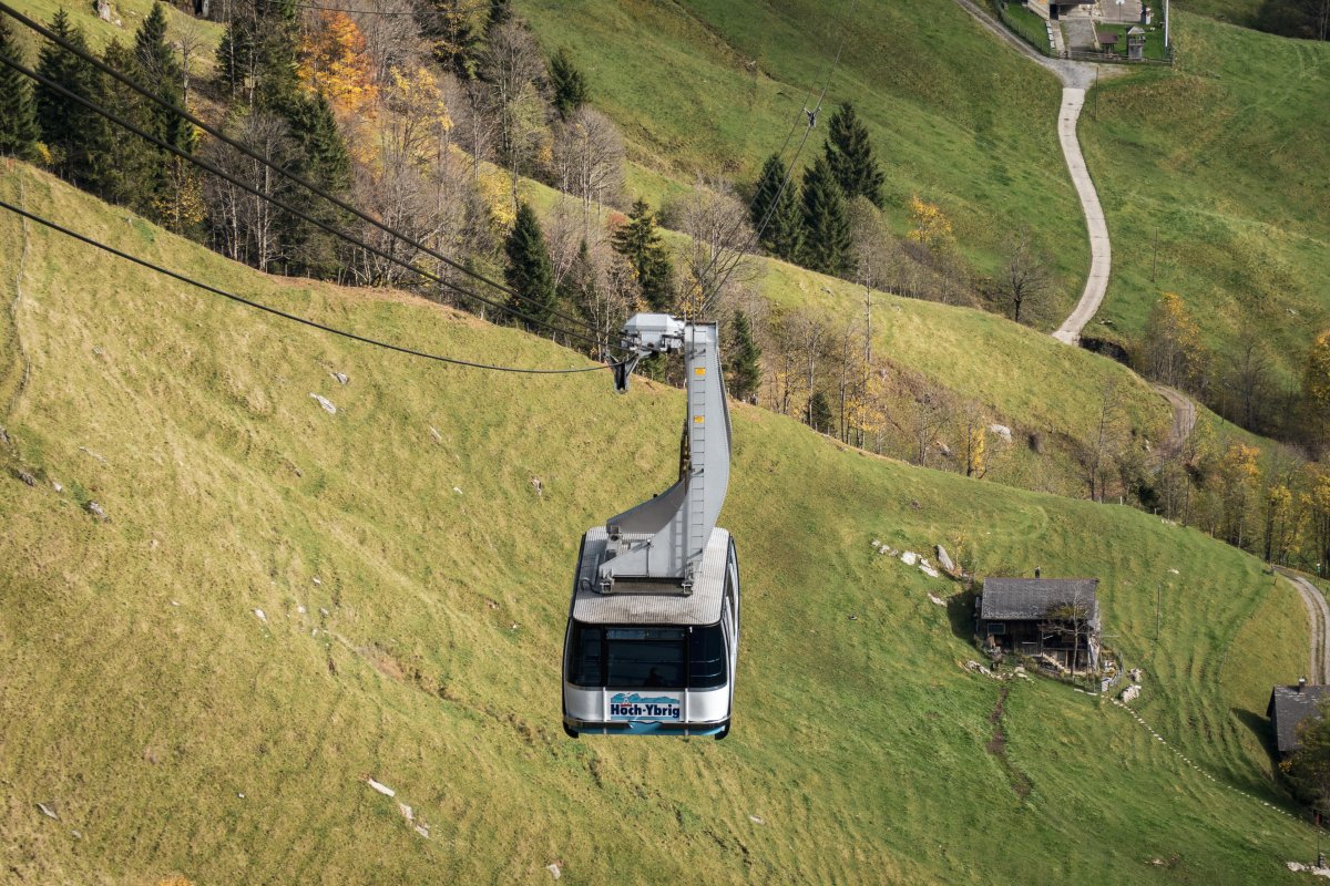 Zahlreiche kuppelbare Sesselbahnen von Doppelmayr erschliessen die Hänge am Hoch-Ybrig. Mit einer Garaventa-Pendelbahn aus den frühen 1970er Jahren als Zubringer besitzt das bekannte Skigebiet aber auch noch einen echten Seilbahn-Klassiker.