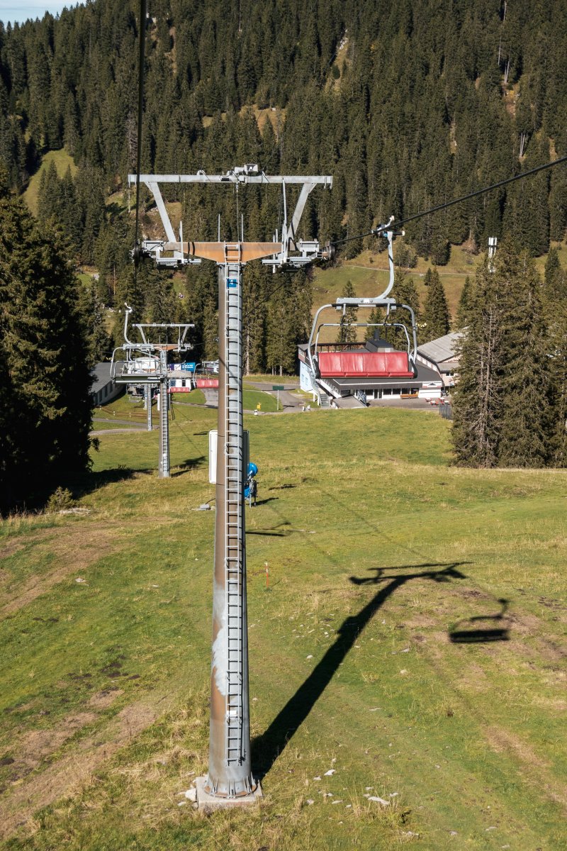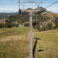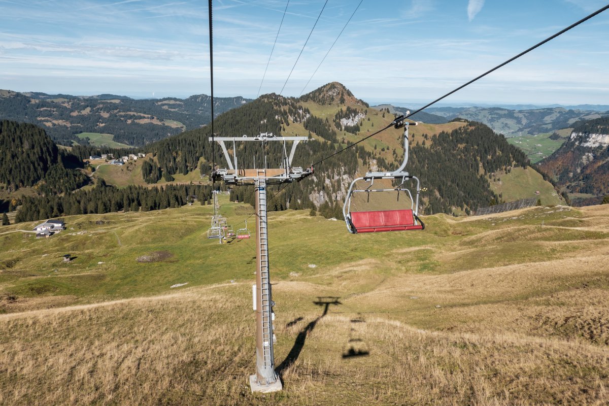 Zahlreiche kuppelbare Sesselbahnen von Doppelmayr erschliessen die Hänge am Hoch-Ybrig. Mit einer Garaventa-Pendelbahn aus den frühen 1970er Jahren als Zubringer besitzt das bekannte Skigebiet aber auch noch einen echten Seilbahn-Klassiker.